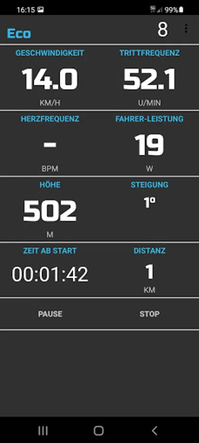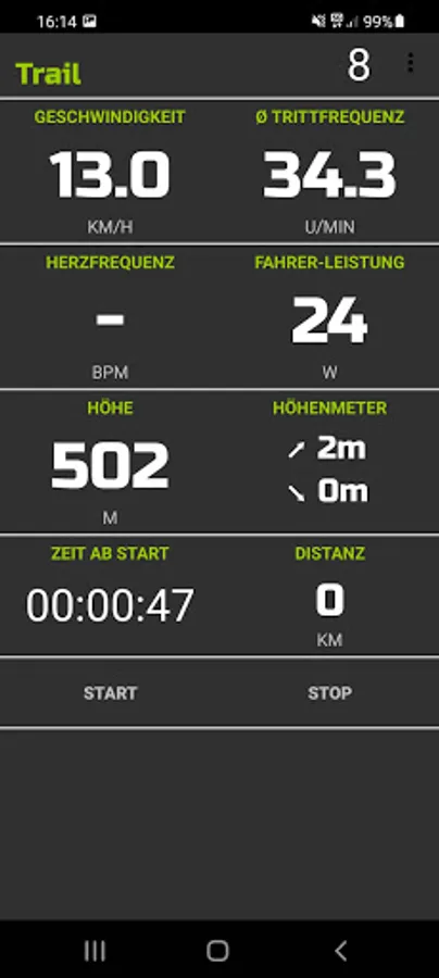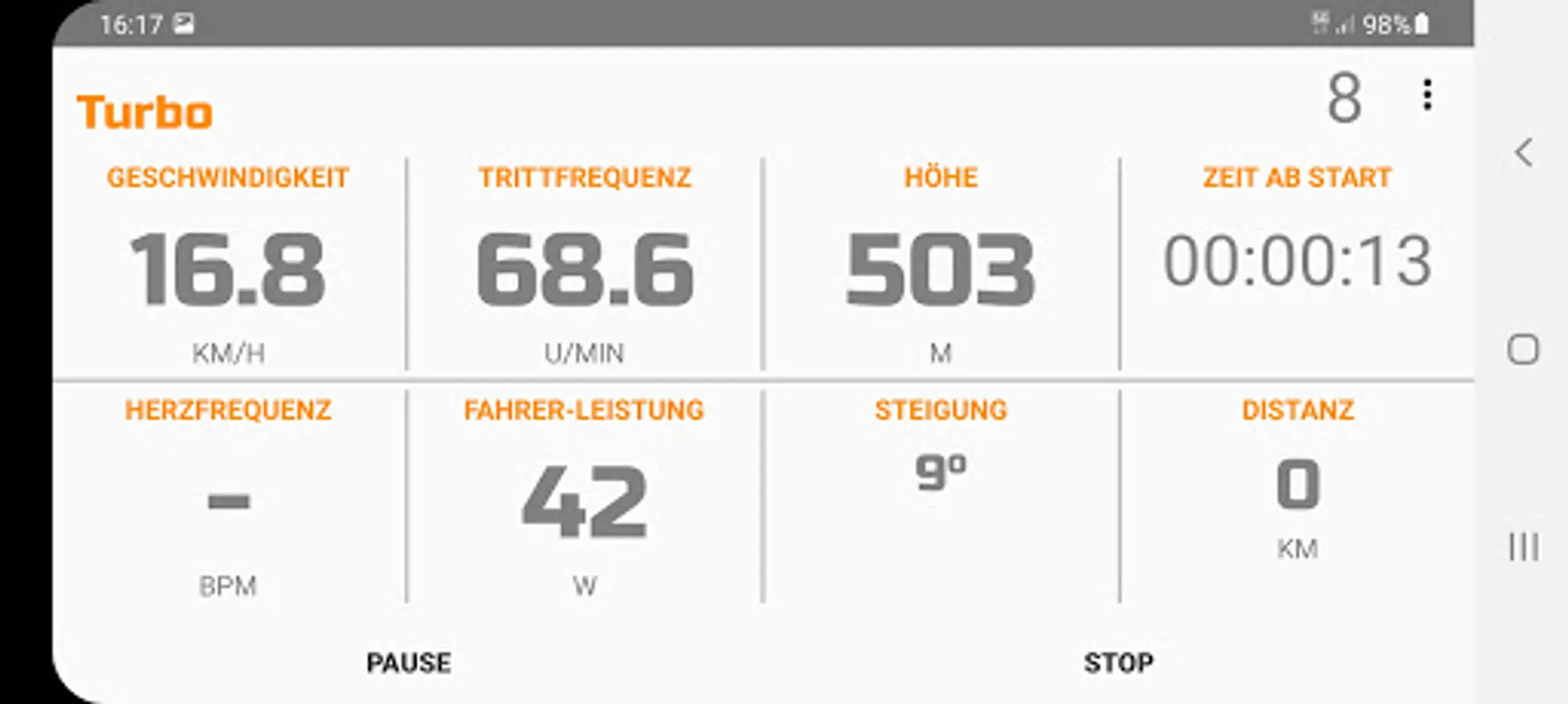 The app was developed as a hobby with the aim of creating a simple bike computer. The Turbo Tacho does not aim to be a jack of all trades.