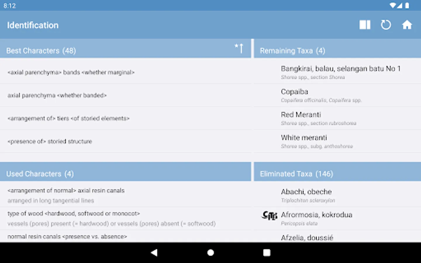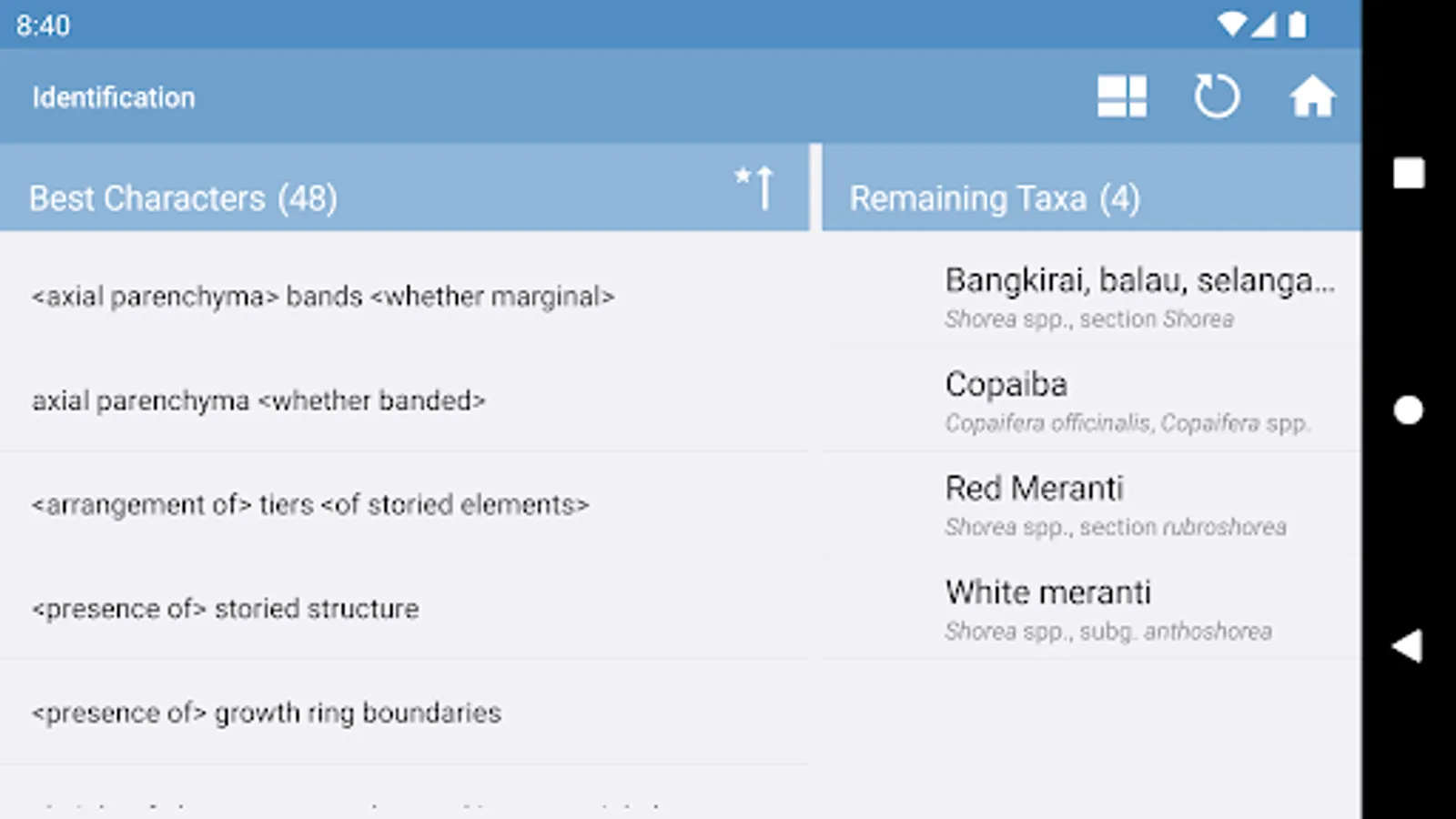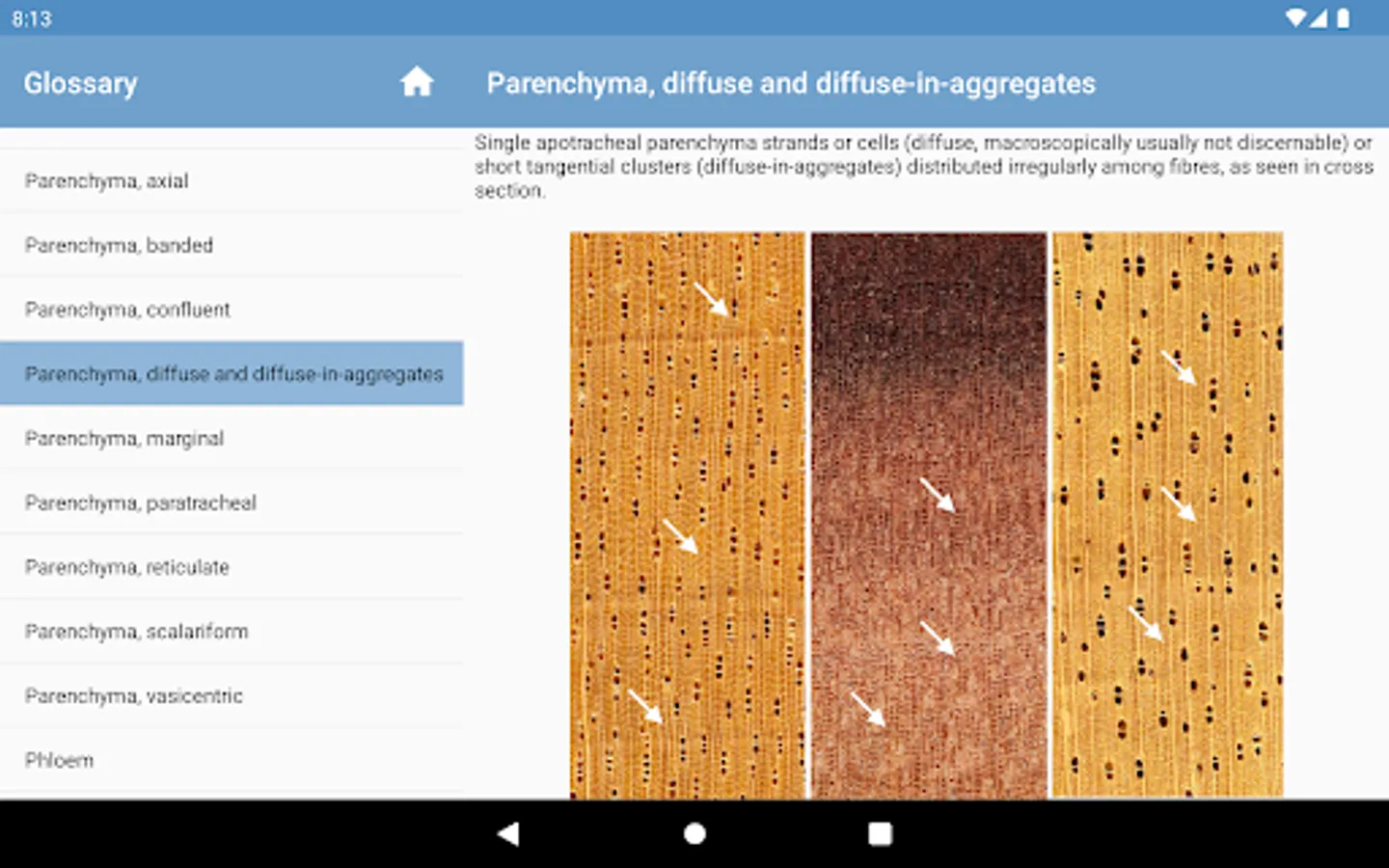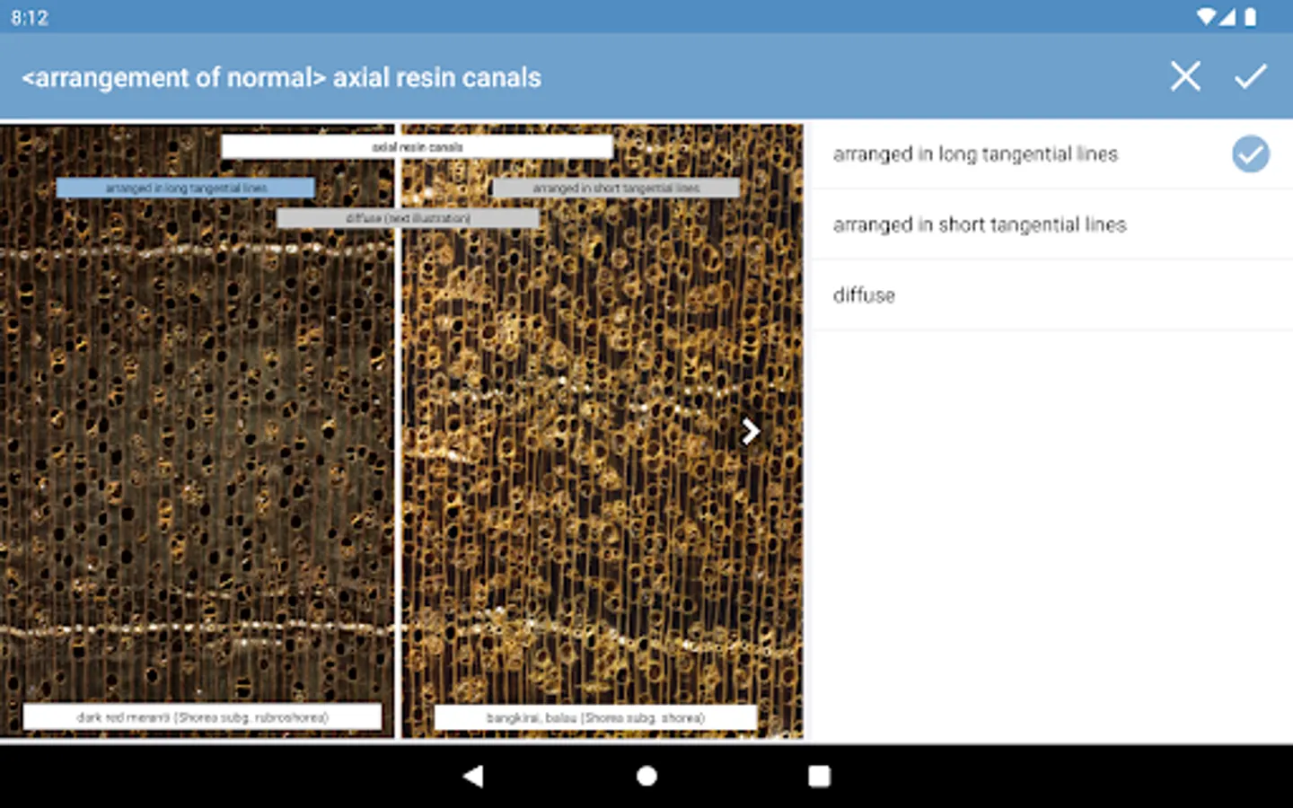 • interactive identification of common trade timbers (hardwoods and softwoods) based on macroscopic features to be observed with the unaided eye or with a hand lens,