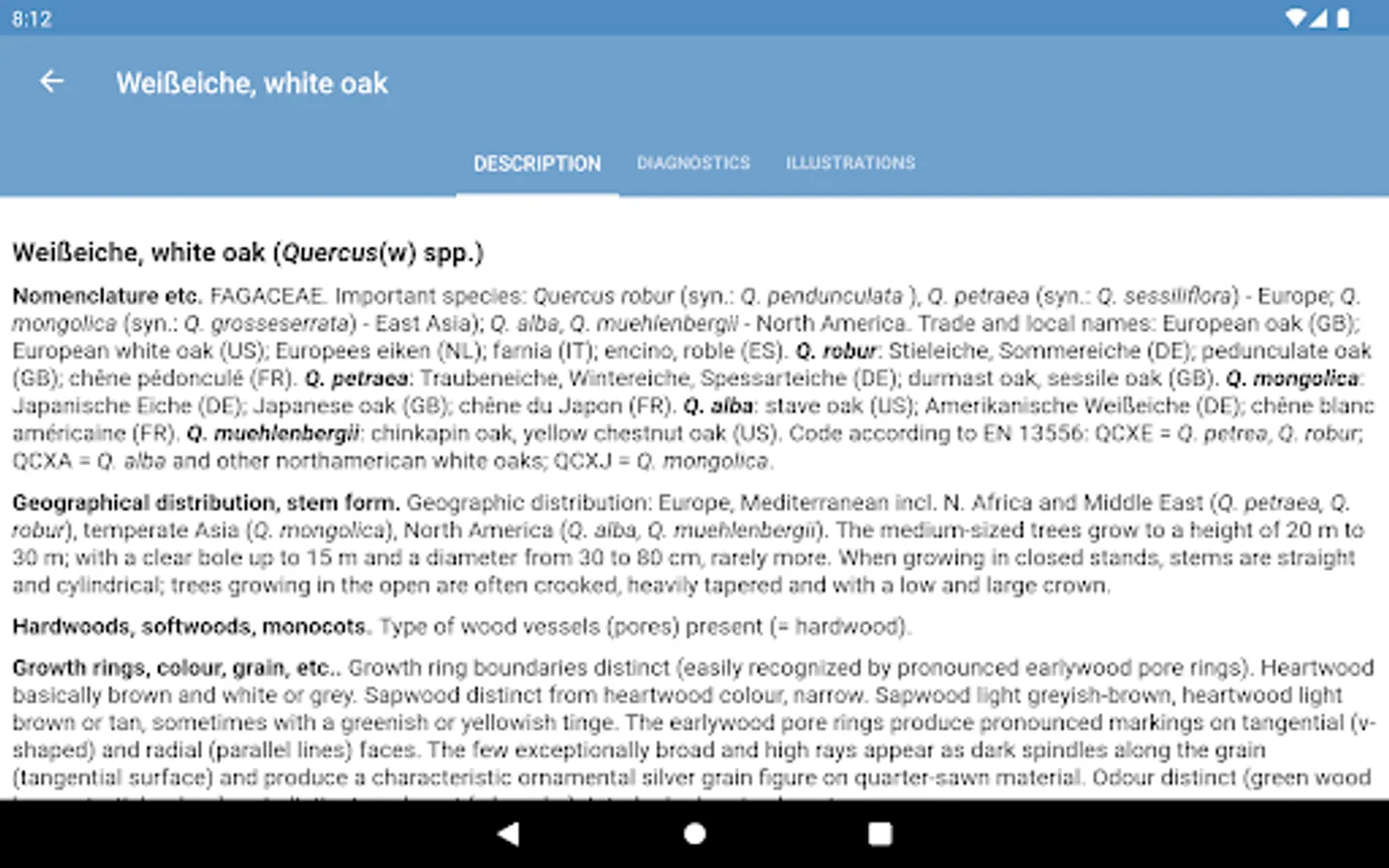 The knowledge about recognition and utilization of the most important internationally traded timbers is of prime importance to forestry and wood industry as well as timber trade and even control authorities. As an important tool for this purpose, the database macroHOLZdata developed at the Thünen Institute for Wood Research has been programmed as an app for smartphones and tablets.
