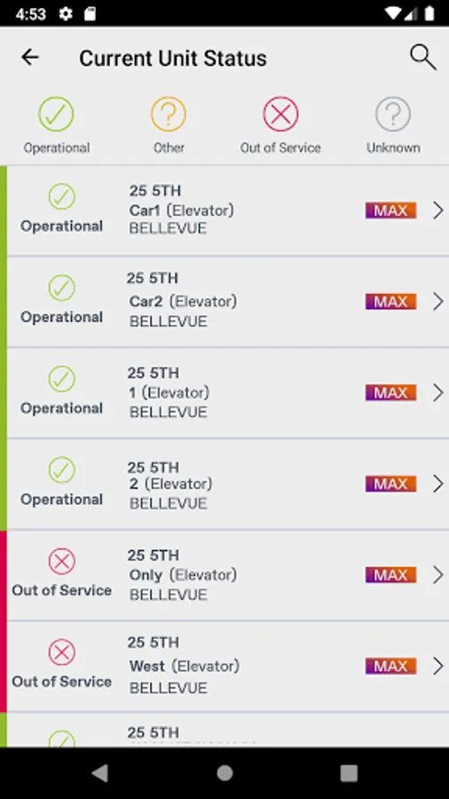 With TK Elevator’s MAX Service app, keep track of your units’ latest activity and create service requests 24/7, wherever you are. And with MAX, our real time monitoring technology, you can check at any time if one of your units has stopped or is back to service.