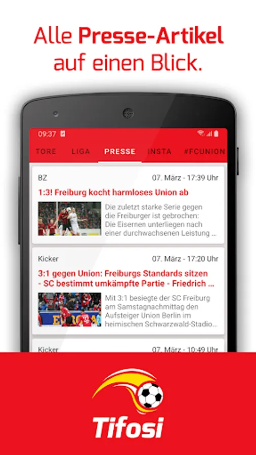 With Tifosi Union for Android you always have all the latest news about Union Berlin in view. Over 40 sources with content - more Union in one app is not possible!