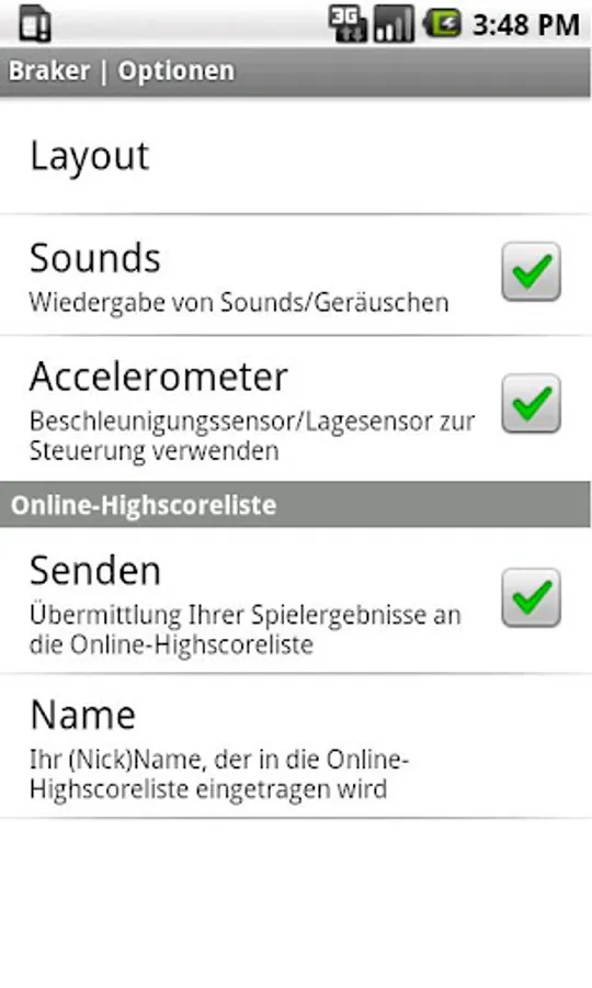 Control via the position sensor (can be switched off in the options dialog) and via the touchscreen;