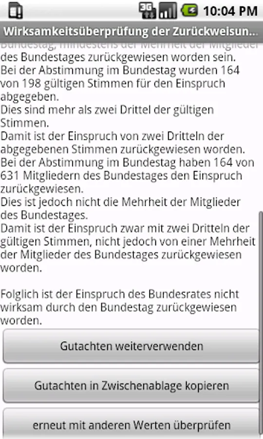 Currently, such limits may under § § 186ff. BGB and majorities required for the rejection of an appeal by the Federal Council by the Bundestag under Article 77, paragraph 4 of the Constitution can be calculated.