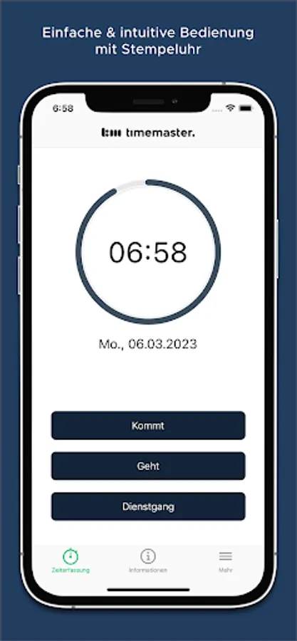 Further information on the timemaster time recording system for companies and the timemaster app can be found on our website www.timemaster.de. You can also contact our hotline on +49 (0) 491 6008 460. We would be happy to advise you personally. Information on testing the free demo version of the app can be found at: https://www.timemaster.de/zeiterfassung/demo.de