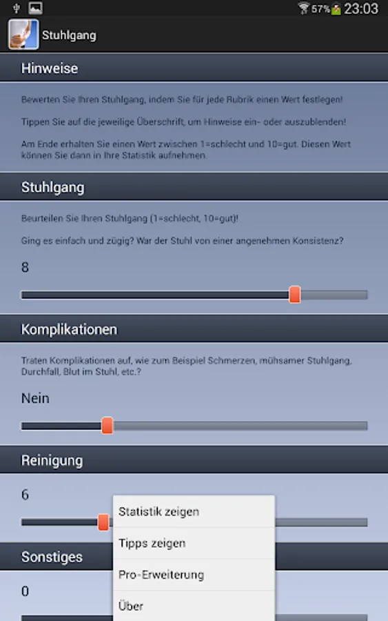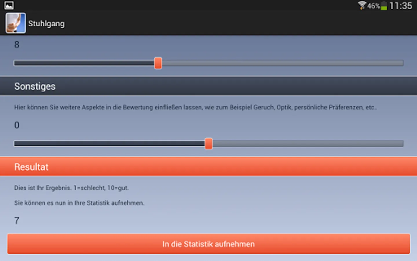 Evaluate and monitor your bowel movements! Perform statistics and recognize digestive problems and poor nutrition early in order to avoid this can! Compare your bowel movements with the previous days!