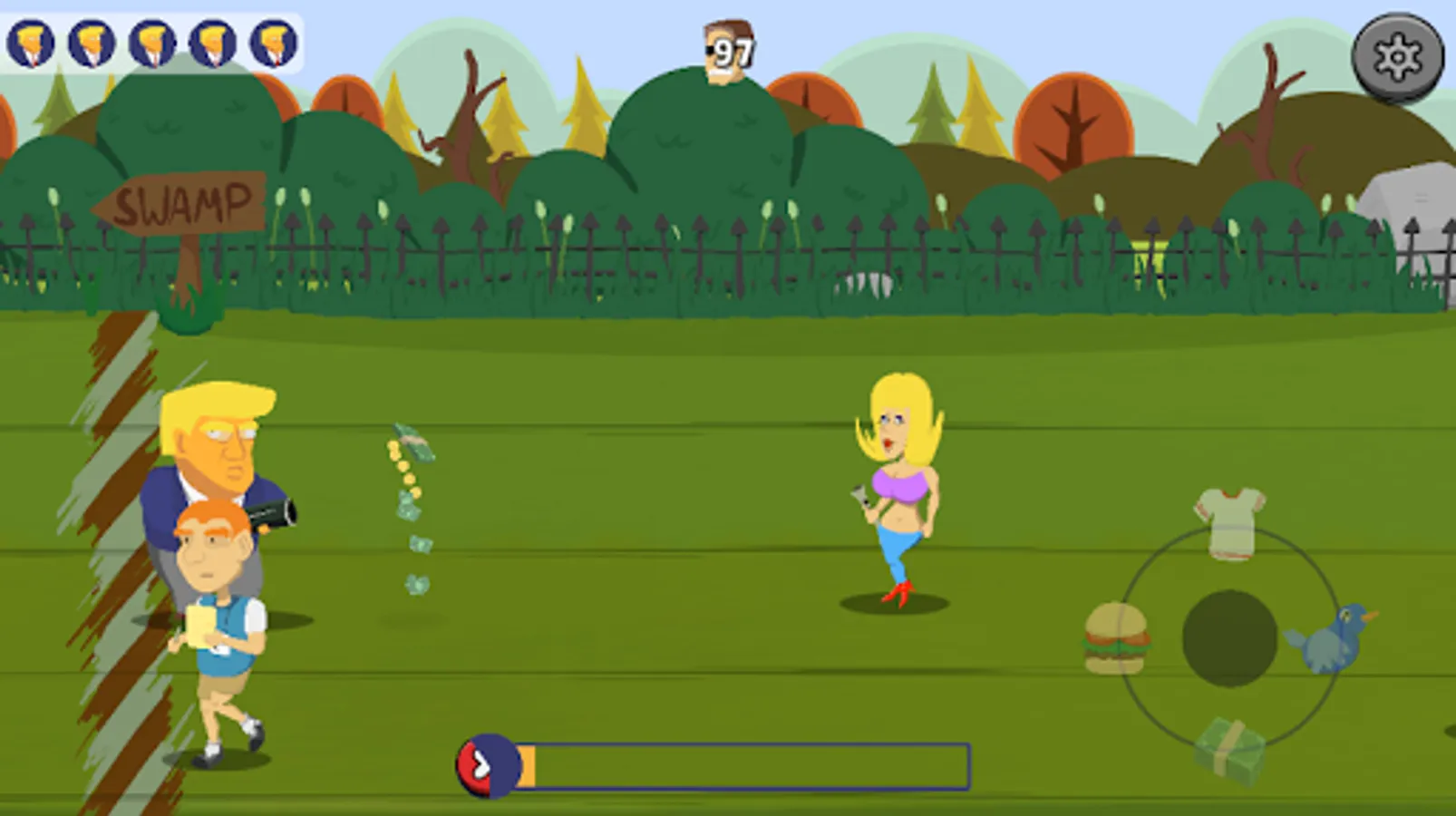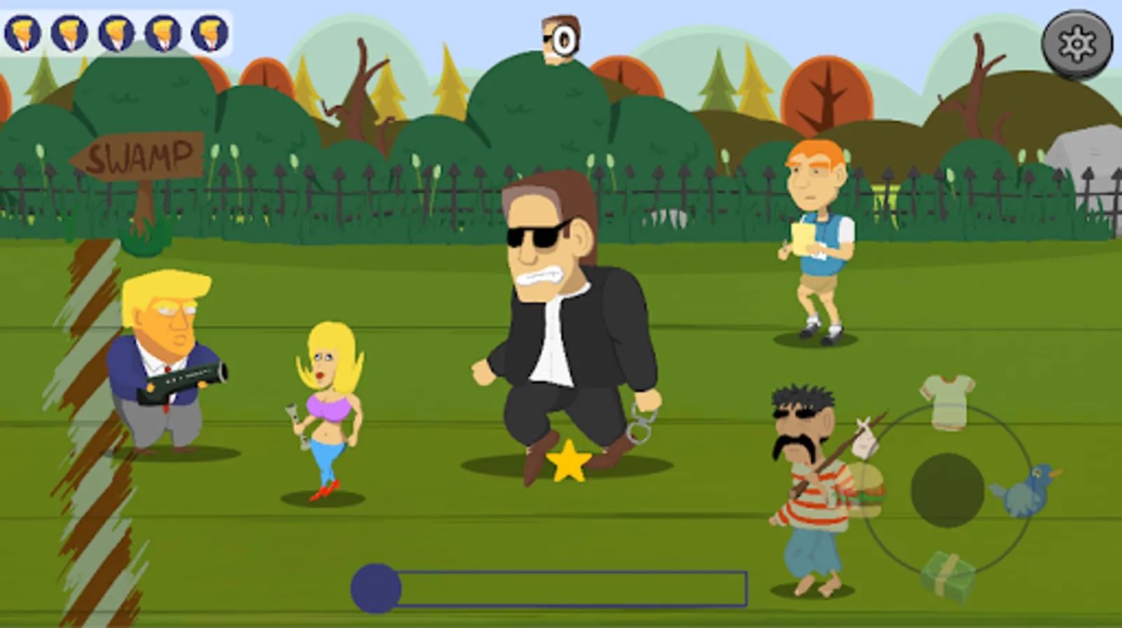 After years of not draining his swamp, Donnie now must stop endless waves of nasty intruders who want to kick him out of his swamp! Help Donnie to defend his swamp against CIA-Agents, Hurricane Victims, Reporters, and Porn-Stars!
