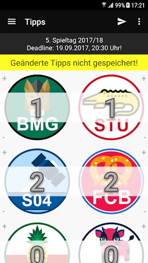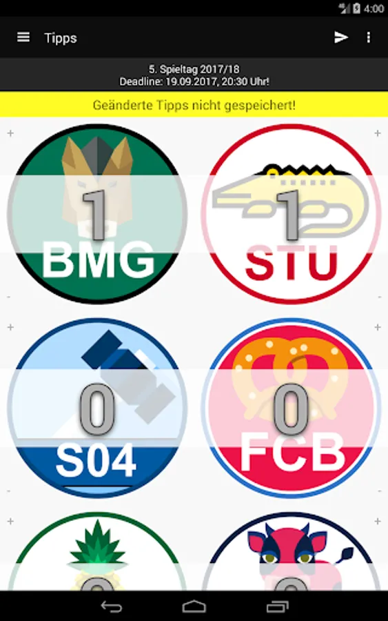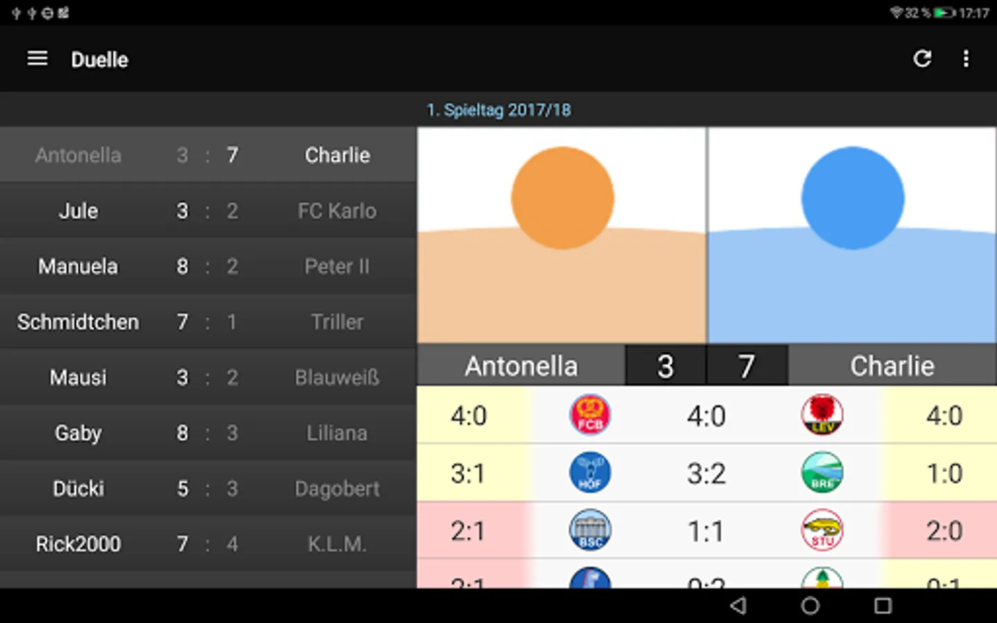 On each matchday your present yourselves with these goals against your current match day opponents in a duel tip. You can follow it live the current game / score.