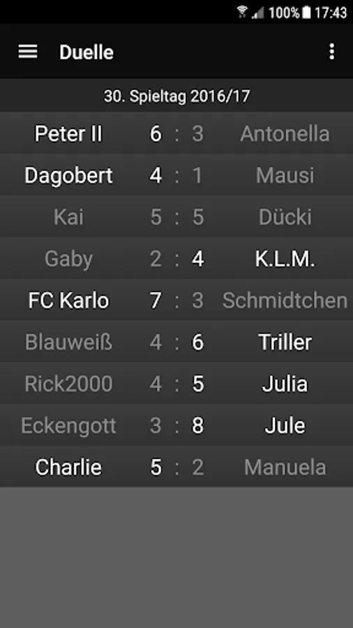 With 18 users in a league you typed in a season twice (round tip) against each other.