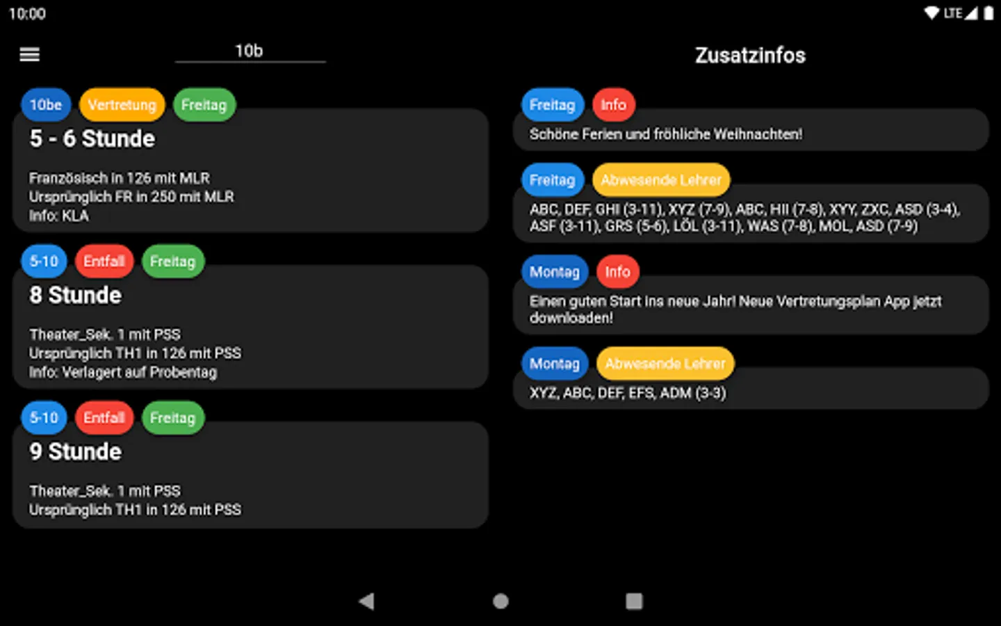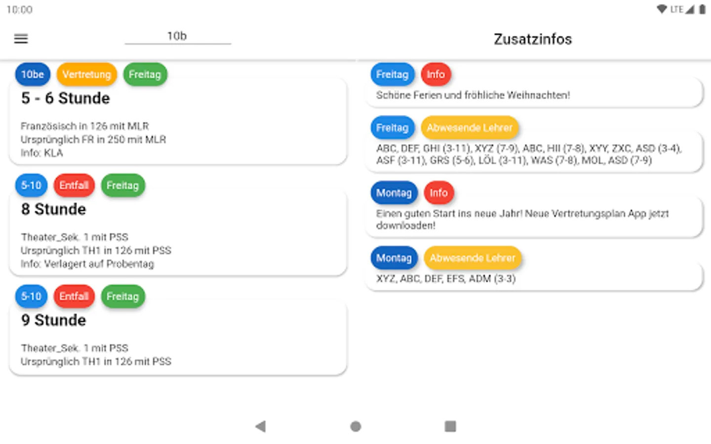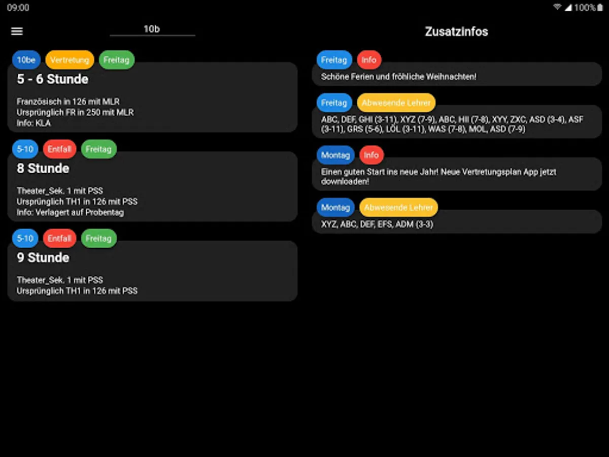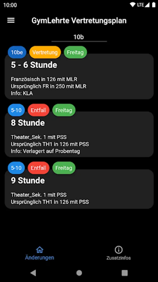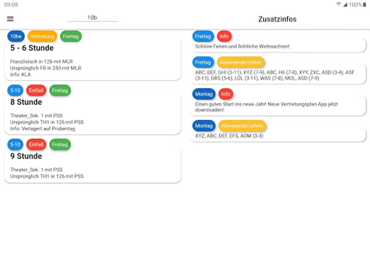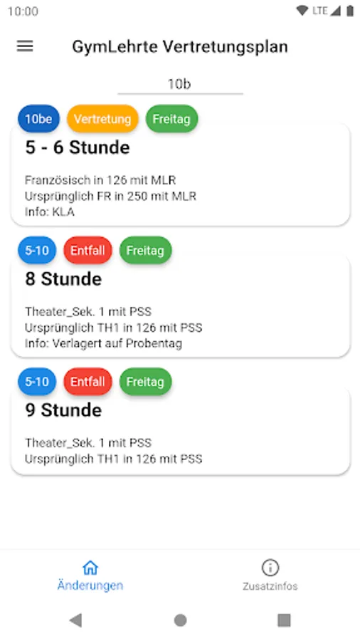 With the Gymnasium Lehrte Representation Plan you can see if you have any missing or other substitutions and changes for you.