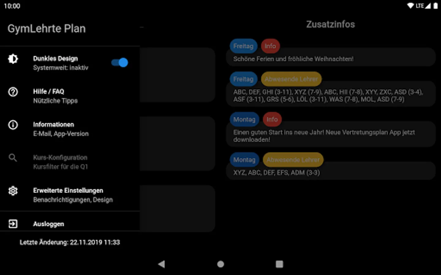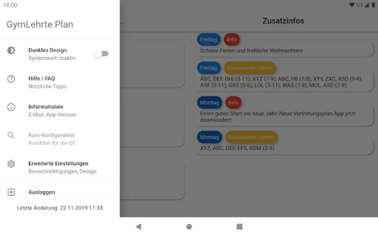 The app also sends push notification within a few minutes if something has changed for you on the substitution plan.