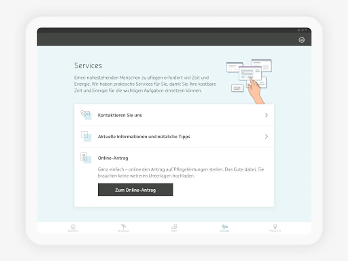 Your contact to the technician, by phone, post or online. You will also receive the latest information and useful tips on all aspects of care. With our online application, you can also easily apply for care benefits.
