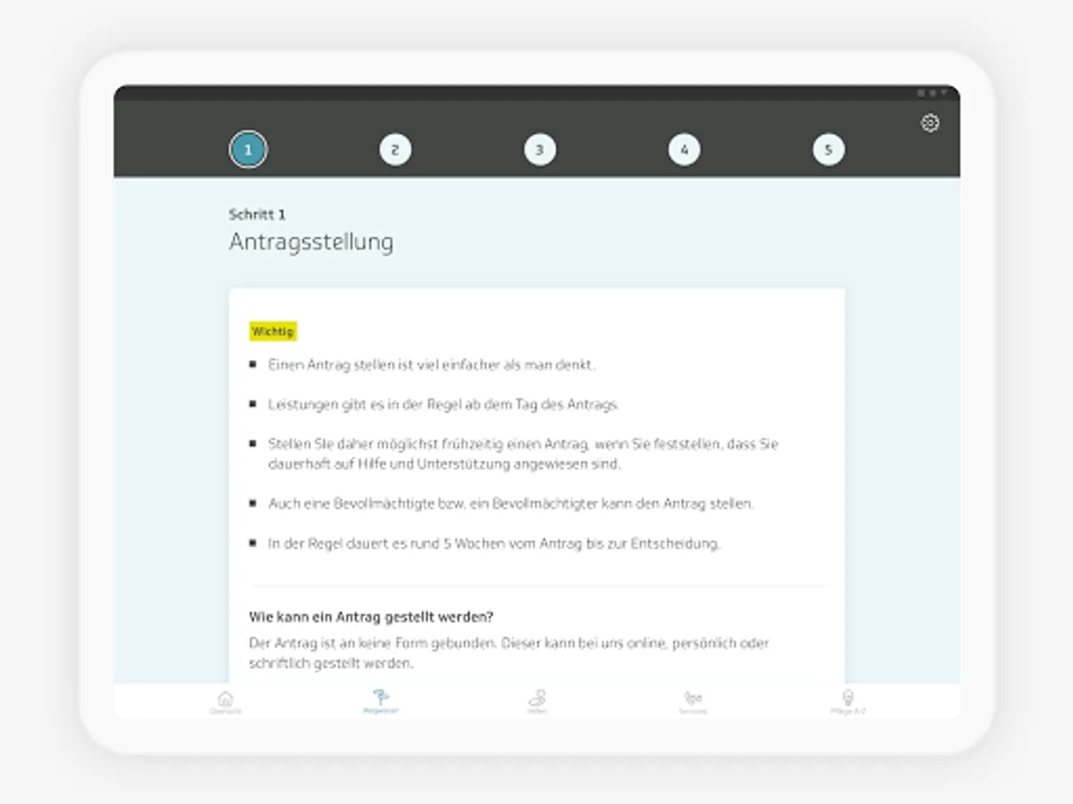 It helps those in need of care and caregiving relatives in this special, mostly new life situation. Everything that is important, transparently prepared in one place - on your smartphone or tablet. Without login or registration.