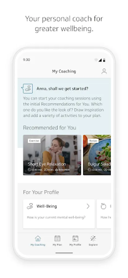 Based on the information you provide and your usage behaviour, you will receive suggestions tailored optimally to your needs. Thanks to a smart suggestion logic, the app creates exactly the right coaching for you.