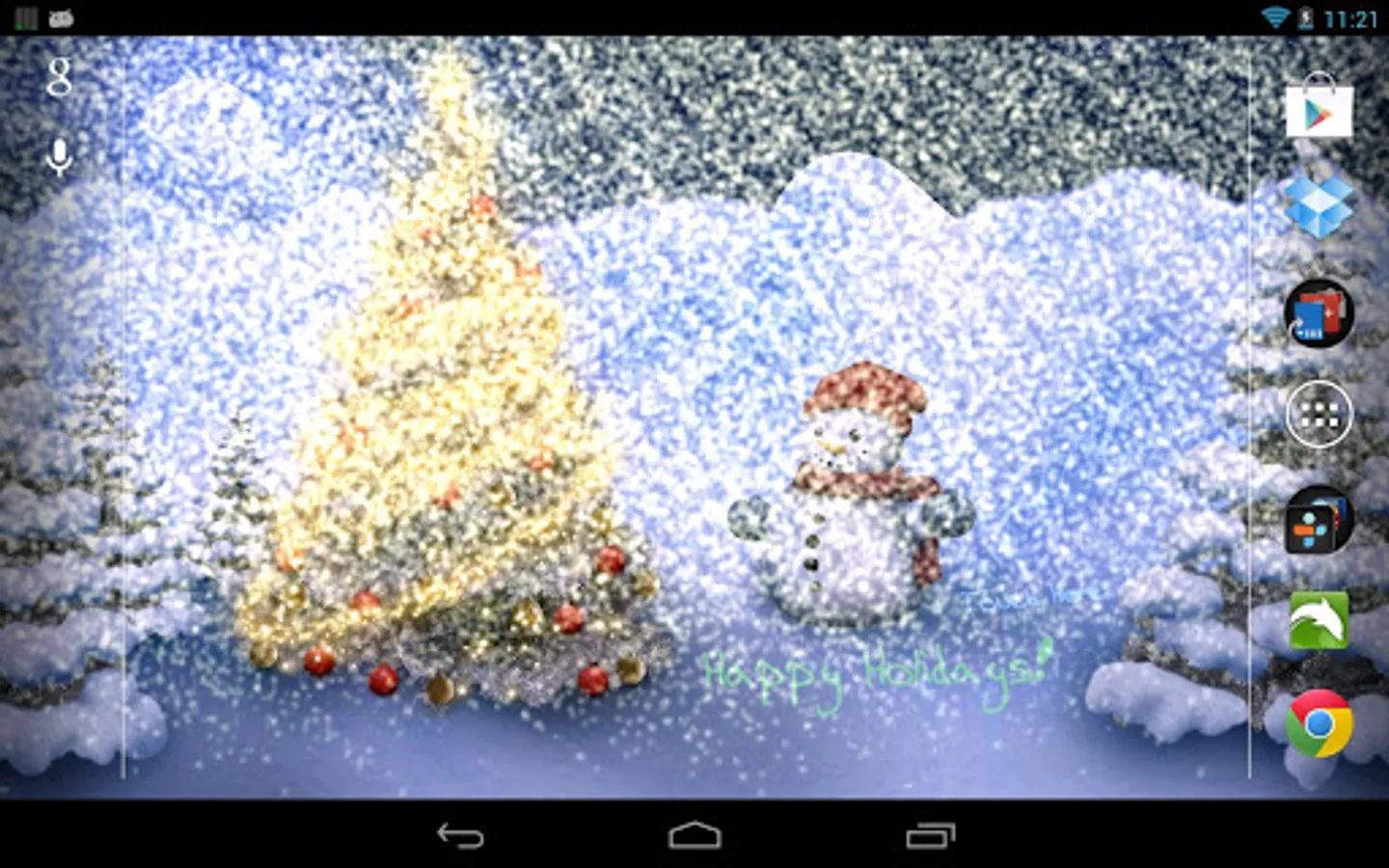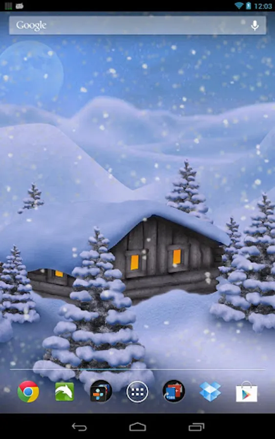 This 3D Christmas Snowfall Live Wallpaper operates smoothly and with low power consumption on all tested smart phones and tablets. It can be installed/moved to SD-Card and comes with full support for landscape mode, home screen switching and all available screen resolutions. The LWP requests no rights and shows no ads whatsoever in this full version!