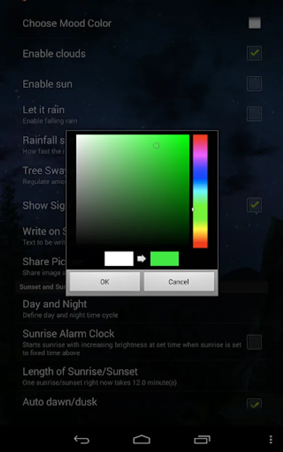 See the sun moving over the sky, sunrise, sunset, twinkling stars at night. And plenty of configuration options, all in the pro versions of this app. Or, if you like, write your own personal message on the sign. And send it to your friends as a postcard.