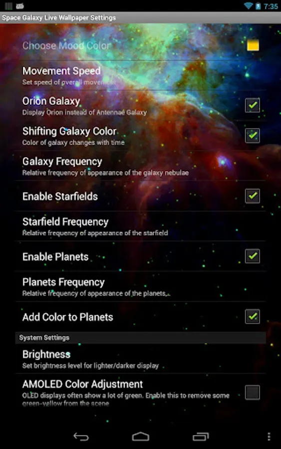 Extra Graphics and Features of the Pro Version, Space Live Wallpaper Pro: