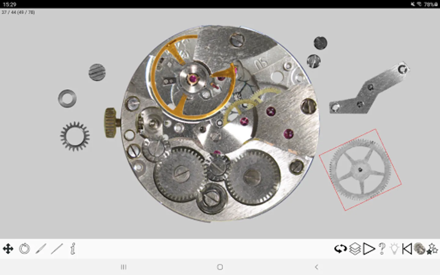 In front of you you find the movement of a wrist watch – disassembled in up to 80 single parts.