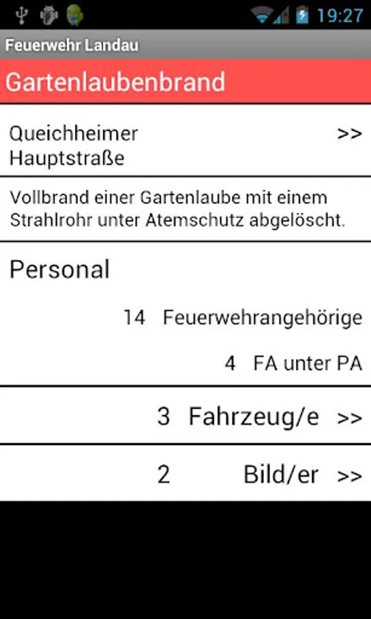 Beside the actual calls, the app shows the latest news and the vehicles of the different units.