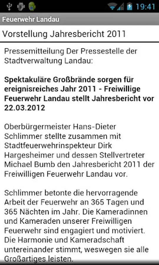 This App informs about the work of the Voluntary Fire Brigade of Landau.