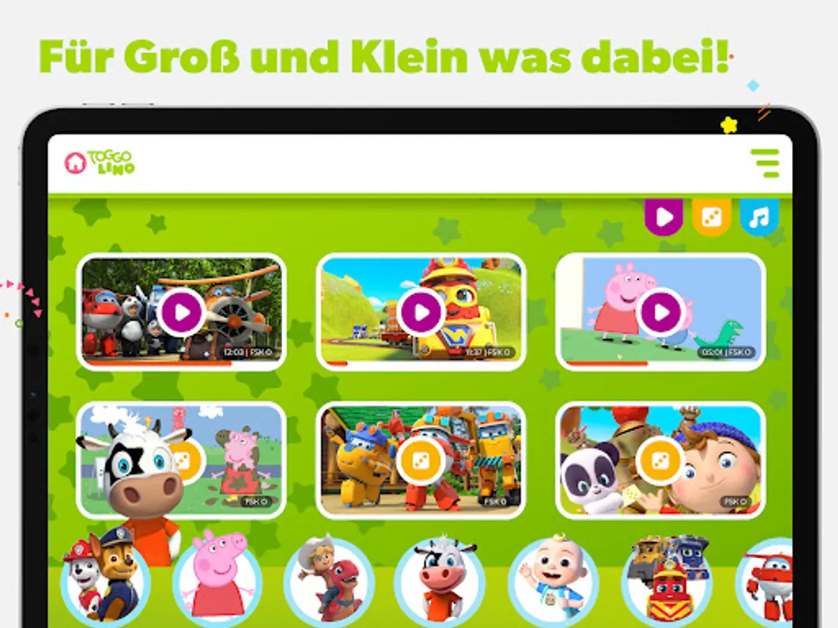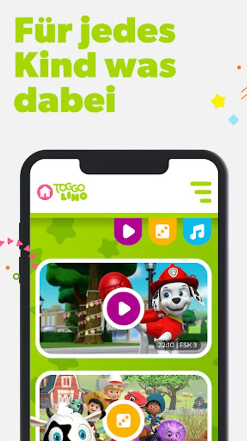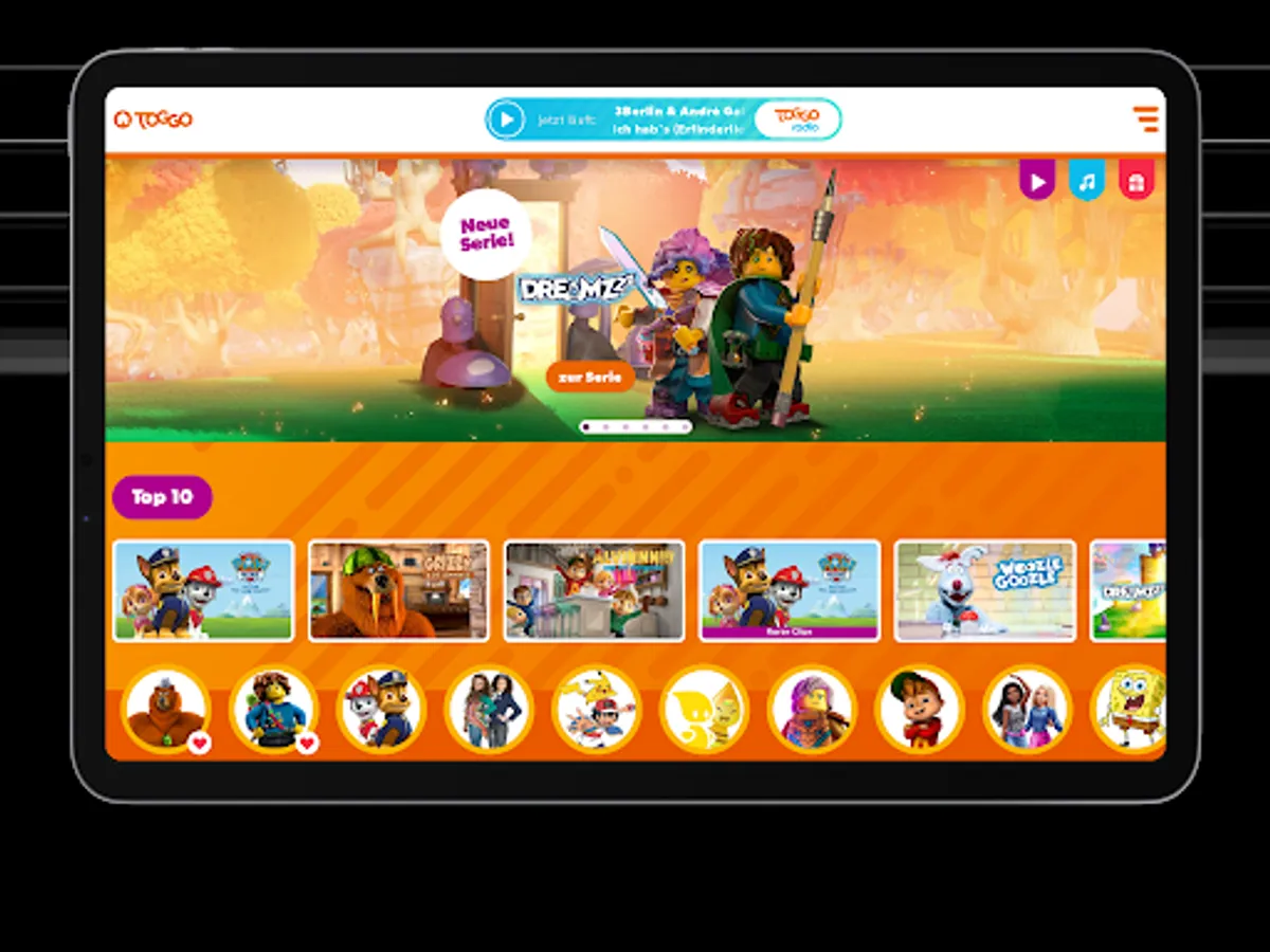 The children's app Toggo from Super RTL - for watching, playing and listening: Kids TV, children's radio, free games for children aged 2 and over, children's songs, films, audio books and radio plays with content from your favorite series such as Paw Patrol, Ninjago, Barbie, Spirit, Pokemon, Peppa Pig, Sesame Street, Spongebob and many more! Over 150 series, full episodes await you, as well as lots of short films and cool games for children aged 2 and 6.