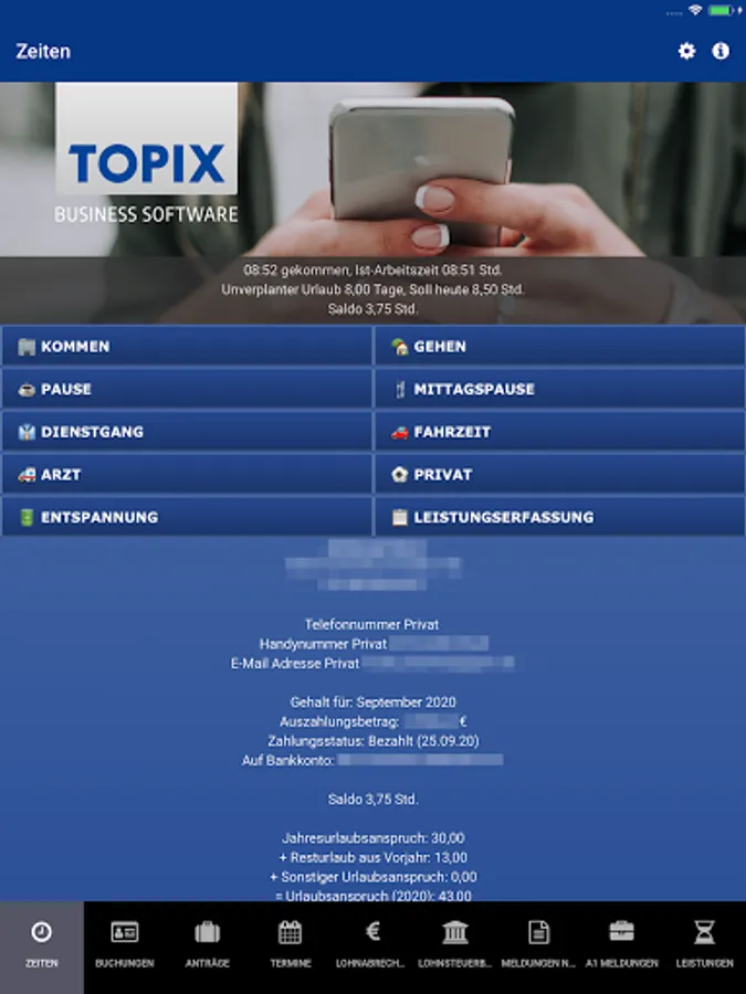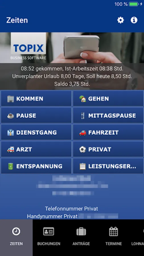√ meinTOPIX is your personnel portal for managing your personal information such as time recording, appointments, vacation requests.