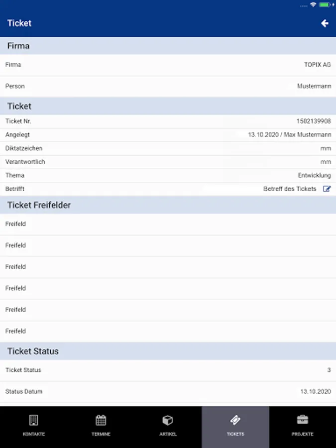 √ The TOPIX Android client offers direct online access to central company data of the ERP / CRM system TOPIX with querying of detailed company, person, CRM, appointment, project, correspondence, process and service ticket information as well Article and price information.