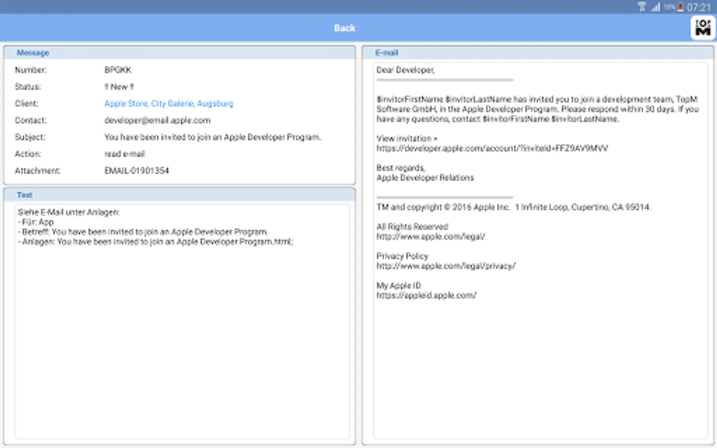 Contact your support team at TopM Software GmbH and arrange an initial setup for using TopM mobile2 on your back-end system.
