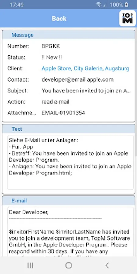 of TopM Software GmbH anytime and anywhere. Managers, executives, sales and service staff can stay informed about business transactions, view reports, manage contacts and carry out sales and service activities.