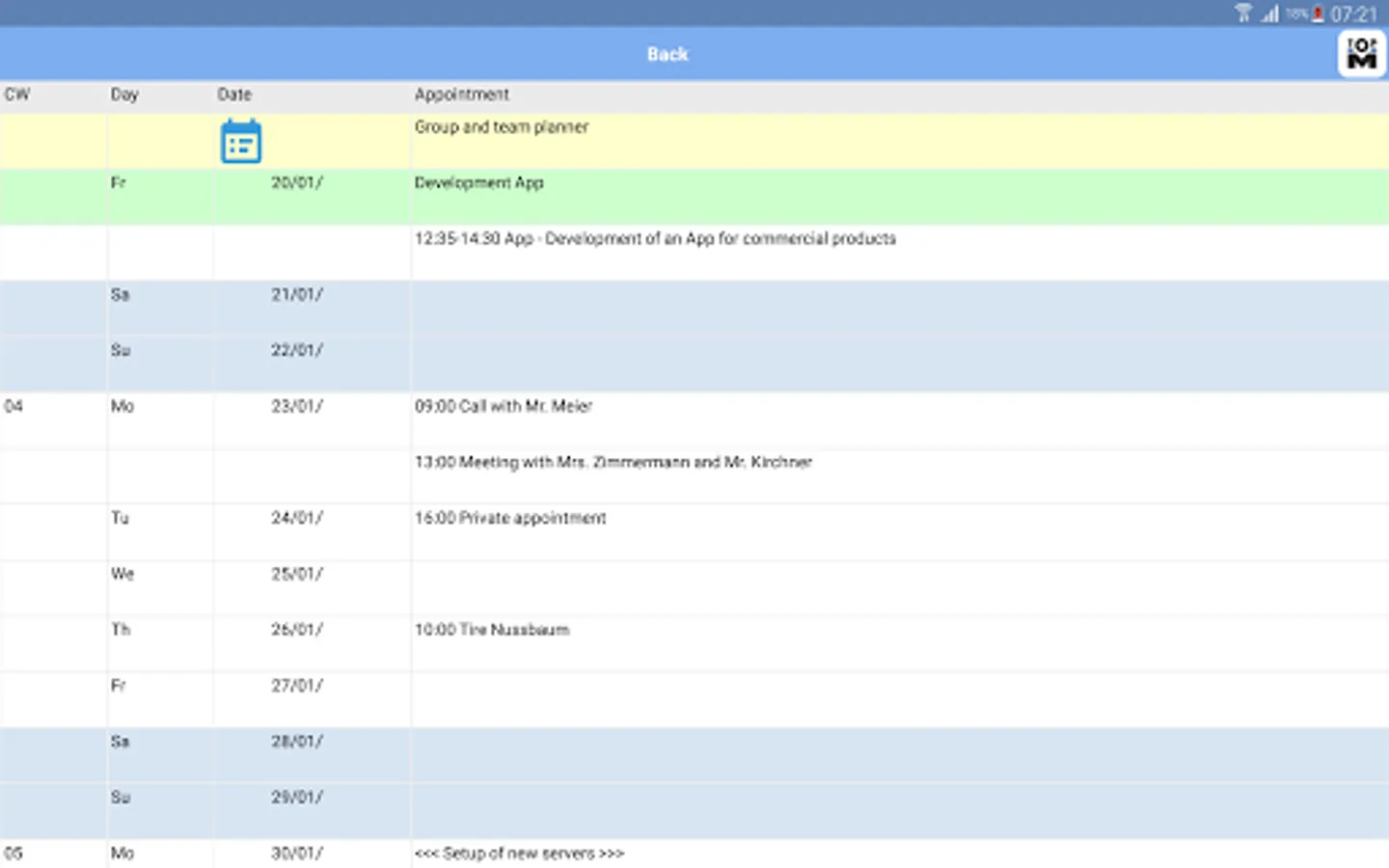 Note: To use TopM mobile2 with your own company data, you need one of the industry solutions listed above as a back-end system and the initial setup by your support team at TopM Software GmbH. You can configure the accesses for your employees and the personalised access rights yourself.