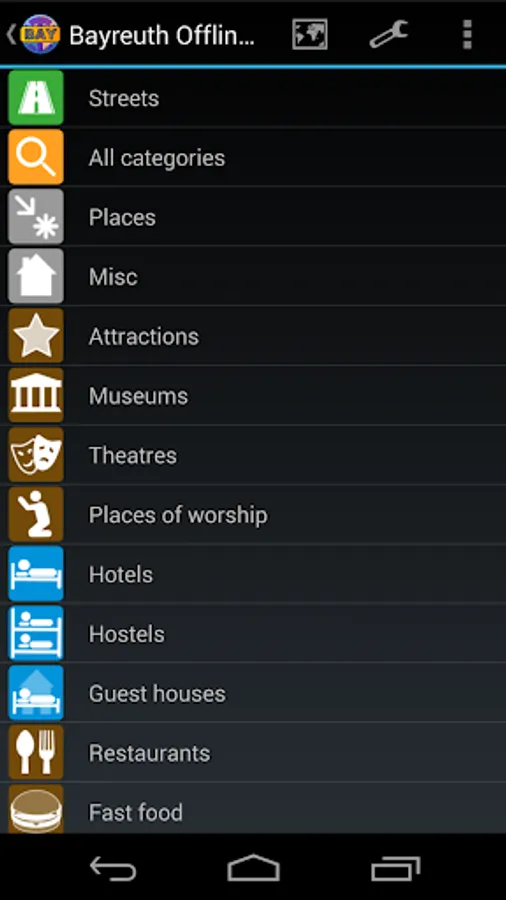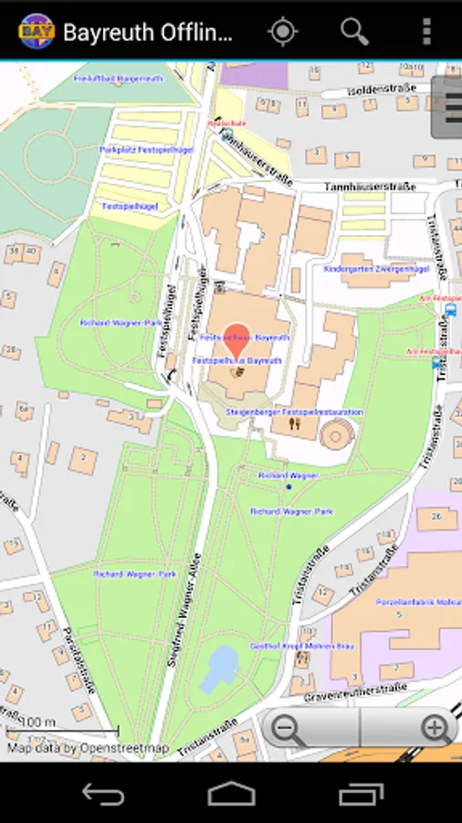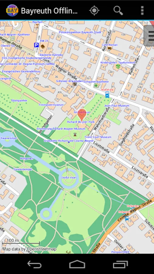 With this app you have the map of Bayreuth right in your pocket! It offers an interactive map that lets you browse the city at amazing detail. Additionally, it comes with a search index for locating streets, but also other places of interest such as museums, restaurants, cafés, hotels, sights and many more. After installing the app, no internet access is required anymore, neither for browsing the map nor for using the search functionality. As a result, the map loads reliably fast and it helps you reducing your data usage to stay within the limits of your data plan. Even if you're a tourist and do not have any mobile data plan at all, the map works equally well, independent of WIFI connectivity.