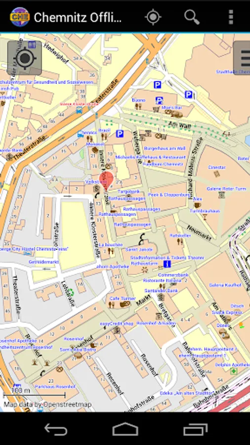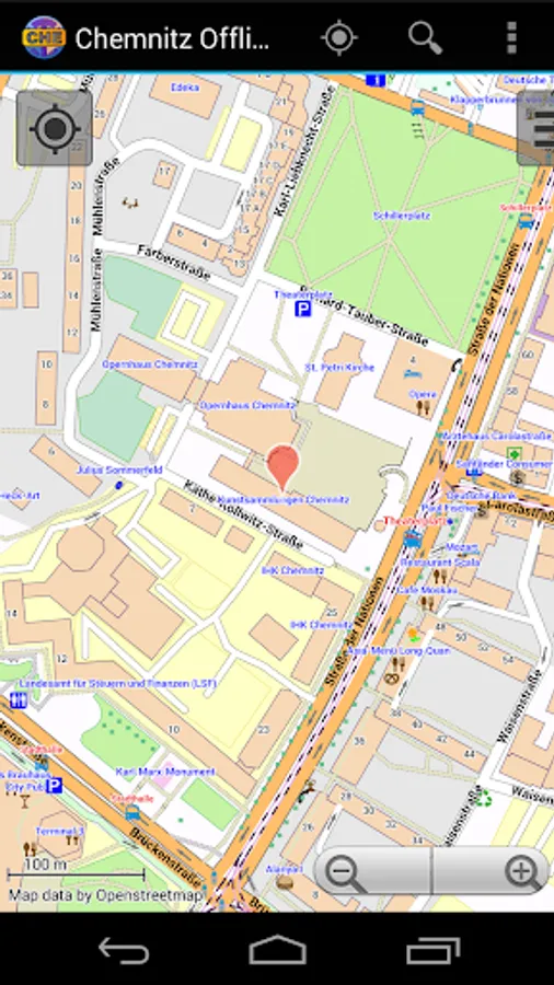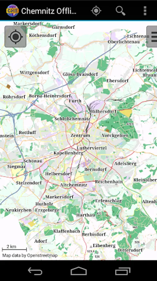 With this app you have the map of Chemnitz right in your pocket! It offers an interactive map that lets you browse the city at amazing detail. Additionally, it comes with a search index for locating streets, but also other places of interest such as museums, restaurants, cafés, hotels, sights and many more. After installing the app, no internet access is required anymore, neither for browsing the map nor for using the search functionality. As a result, the map loads reliably fast and it helps you reducing your data usage to stay within the limits of your data plan. Even if you're a tourist and do not have any mobile data plan at all, the map works equally well, independent of WIFI connectivity.