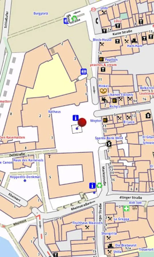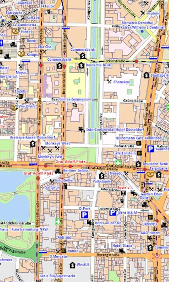 With this app you have the map of Düsseldorf right in your pocket! It offers an interactive map that lets you browse the city at amazing detail. Additionally, it comes with a search index for locating streets, but also other places of interest such as museums, restaurants, cafés, hotels, sights and many more. After installing the app, no internet access is required anymore, neither for browsing the map nor for using the search functionality. As a result, the map loads reliably fast and it helps you reducing your data usage to stay within the limits of your data plan. Even if you're a tourist and do not have any mobile data plan at all, the map works equally well, independent of WIFI connectivity.