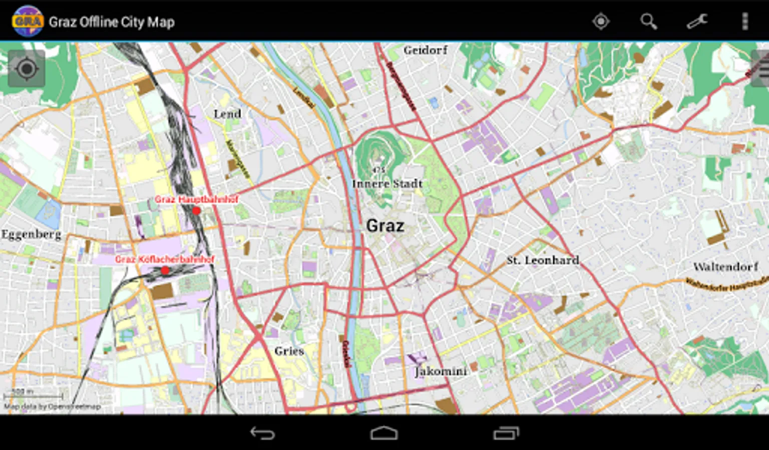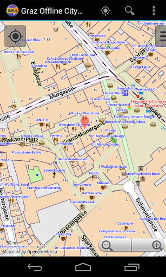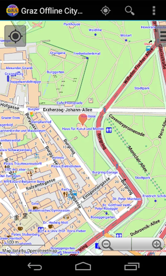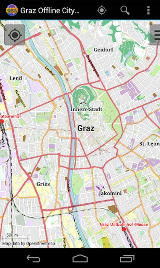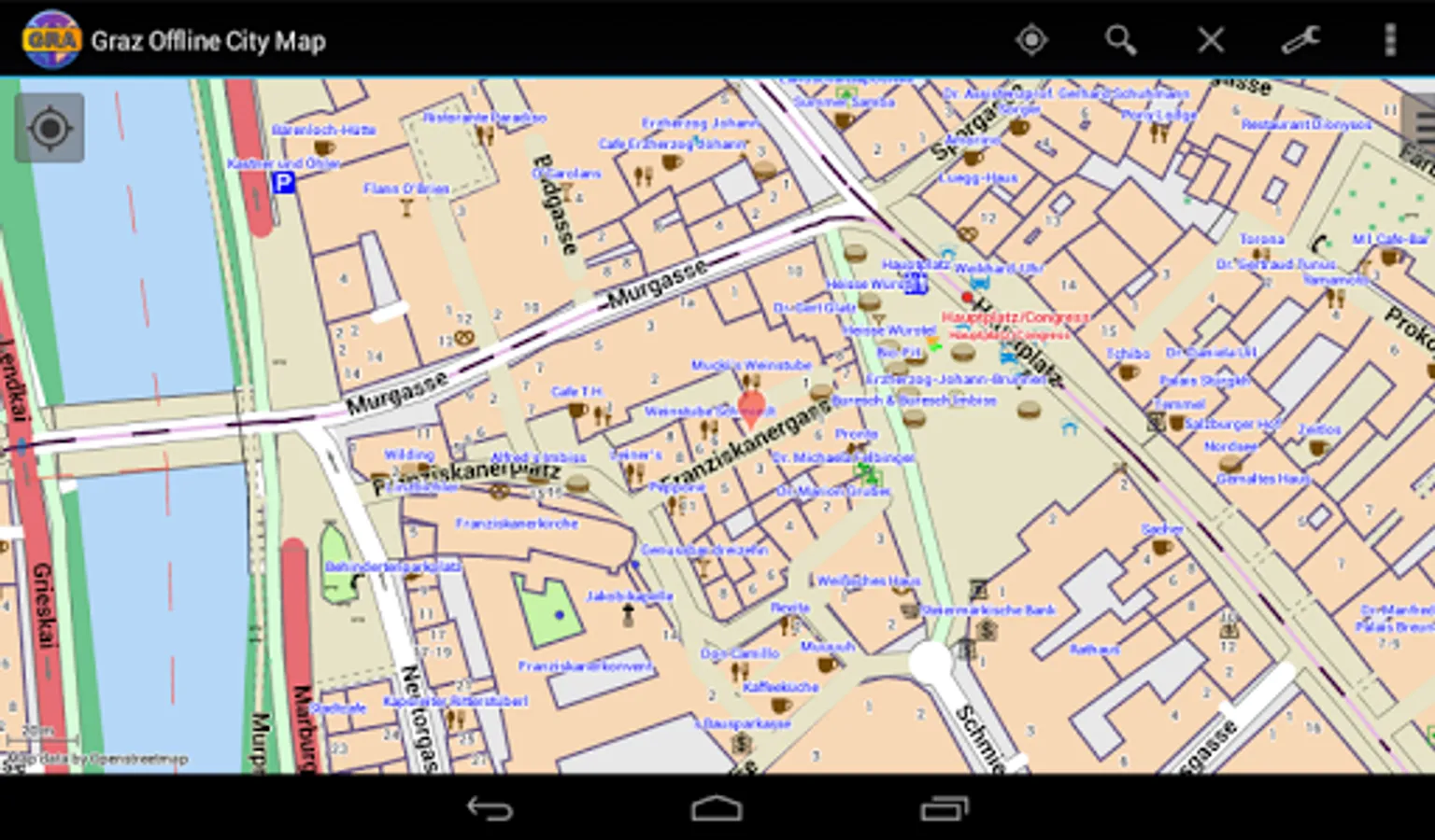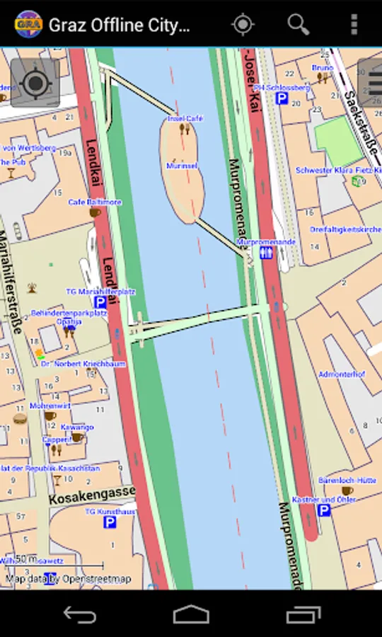 With this app you have the map of Graz right in your pocket! It offers an interactive map that lets you browse the city at amazing detail. Additionally, it comes with a search index for locating streets, but also other places of interest such as museums, restaurants, cafés, hotels, sights and many more. After installing the app, no internet access is required anymore, neither for browsing the map nor for using the search functionality. As a result, the map loads reliably fast and it helps you reducing your data usage to stay within the limits of your data plan. Even if you're a tourist and do not have any mobile data plan at all, the map works equally well, independent of WIFI connectivity.