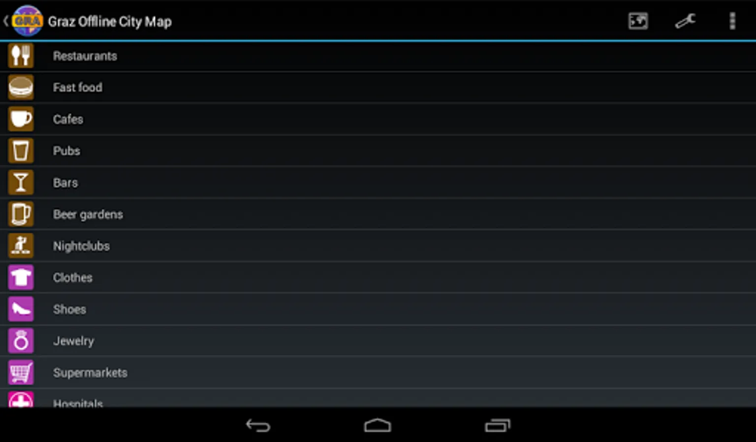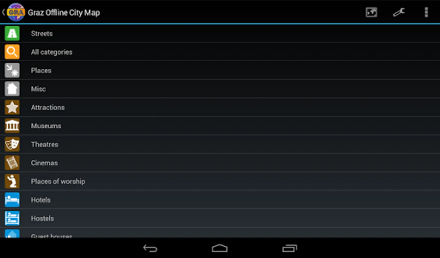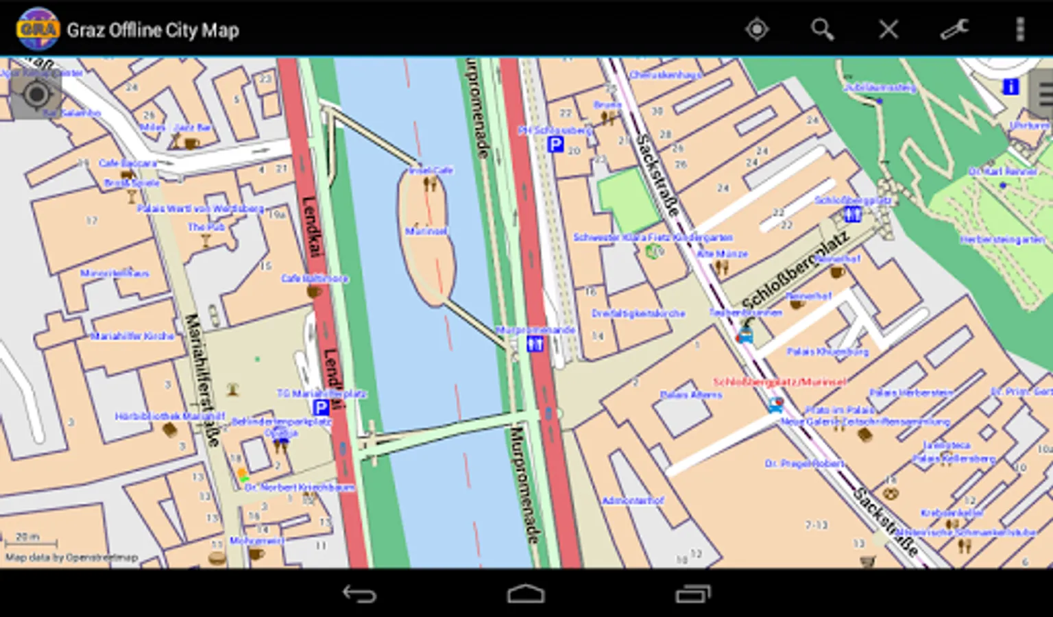 With this app you have the map of Graz right in your pocket! It offers an interactive map that lets you browse the city at amazing detail. Additionally, it comes with a search index for locating streets, but also other places of interest such as museums, restaurants, cafés, hotels, sights and many more. After installing the app, no internet access is required anymore, neither for browsing the map nor for using the search functionality. As a result, the map loads reliably fast and it helps you reducing your data usage to stay within the limits of your data plan. Even if you're a tourist and do not have any mobile data plan at all, the map works equally well, independent of WIFI connectivity.