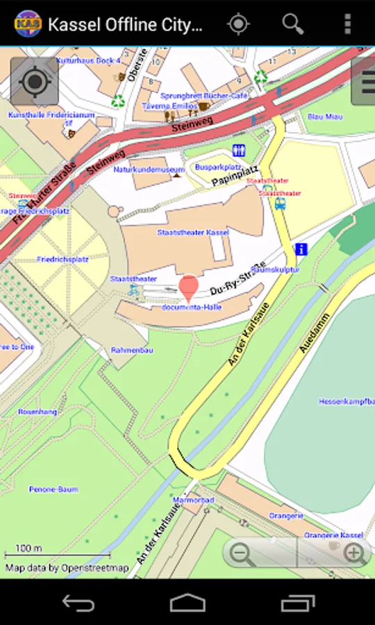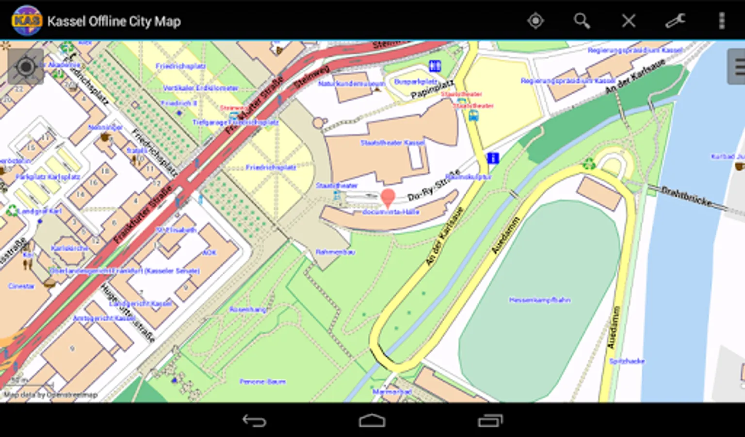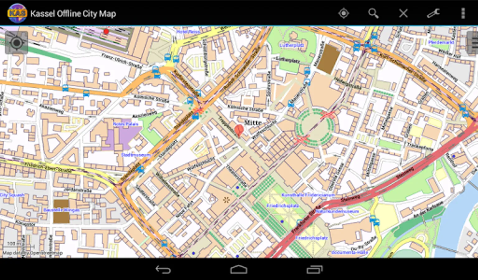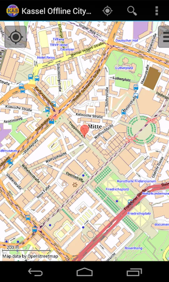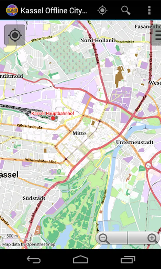 With this app you have the map of Kassel right in your pocket! It offers an interactive map that lets you browse the city at amazing detail. Additionally, it comes with a search index for locating streets, but also other places of interest such as museums, restaurants, cafés, hotels, sights and many more. After installing the app, no internet access is required anymore, neither for browsing the map nor for using the search functionality. As a result, the map loads reliably fast and it helps you reducing your data usage to stay within the limits of your data plan. Even if you're a tourist and do not have any mobile data plan at all, the map works equally well, independent of WIFI connectivity.