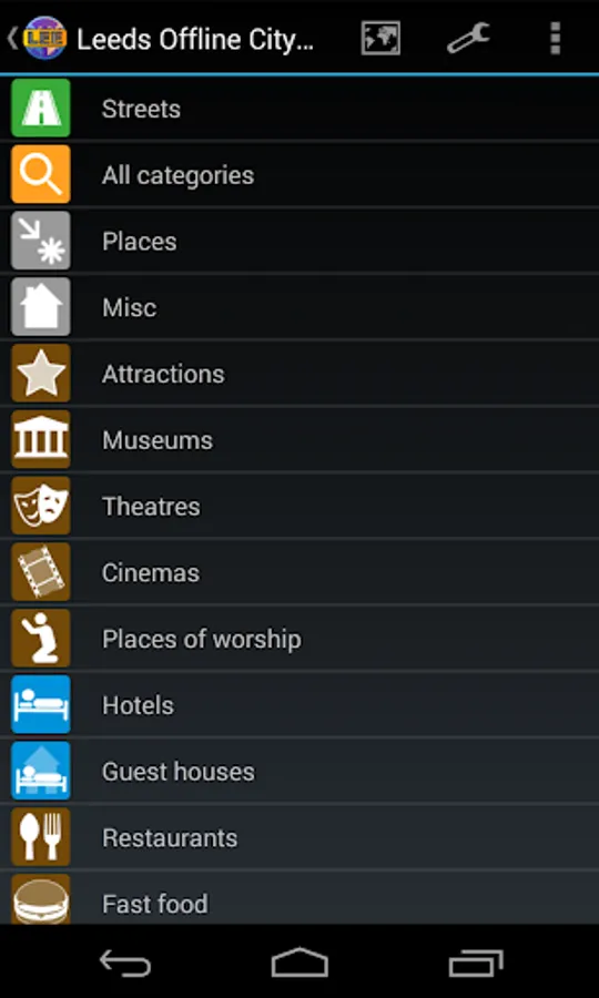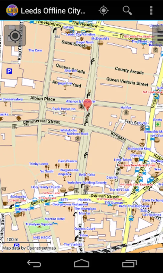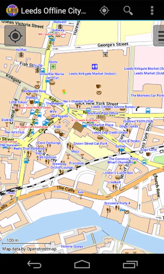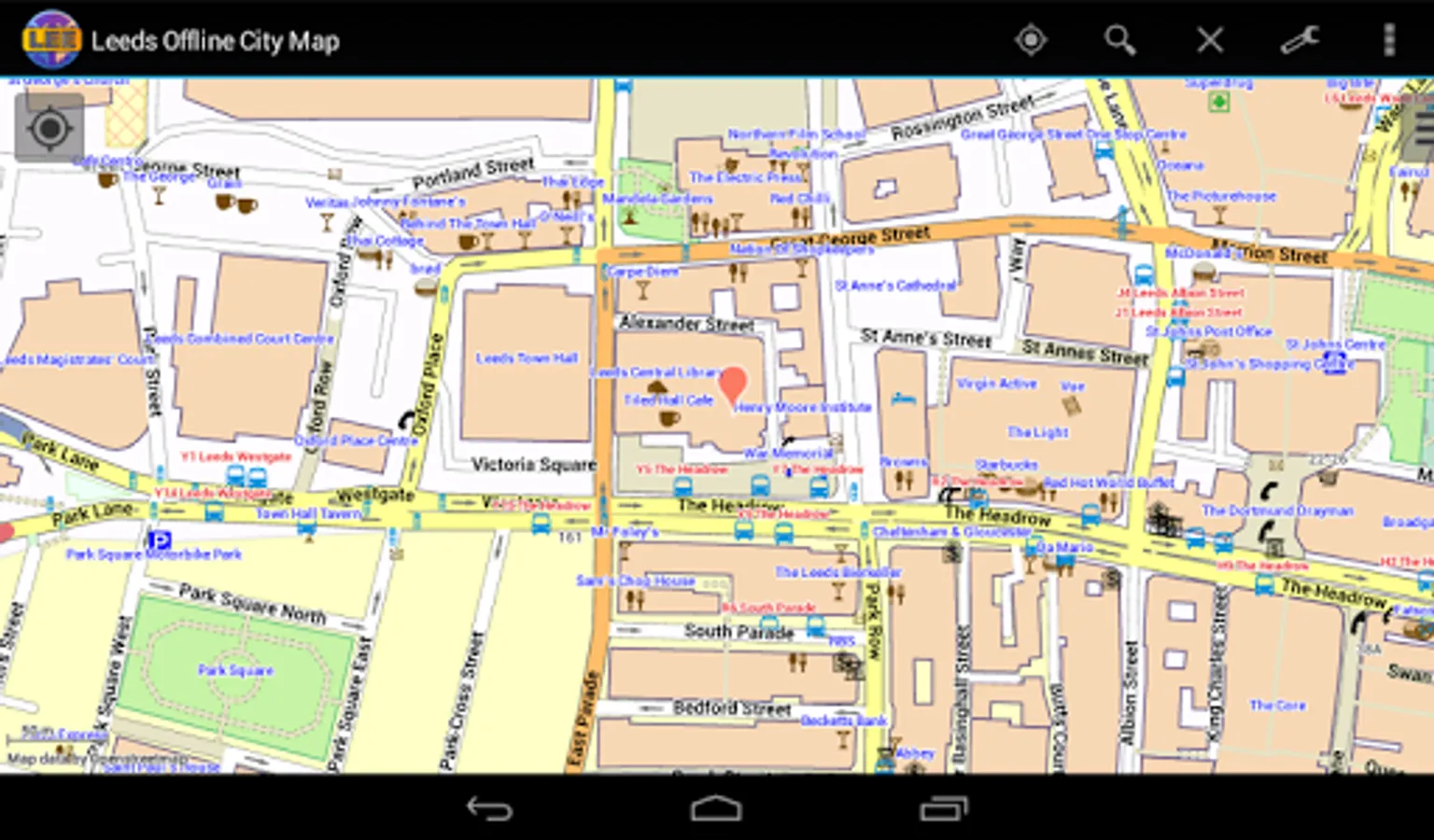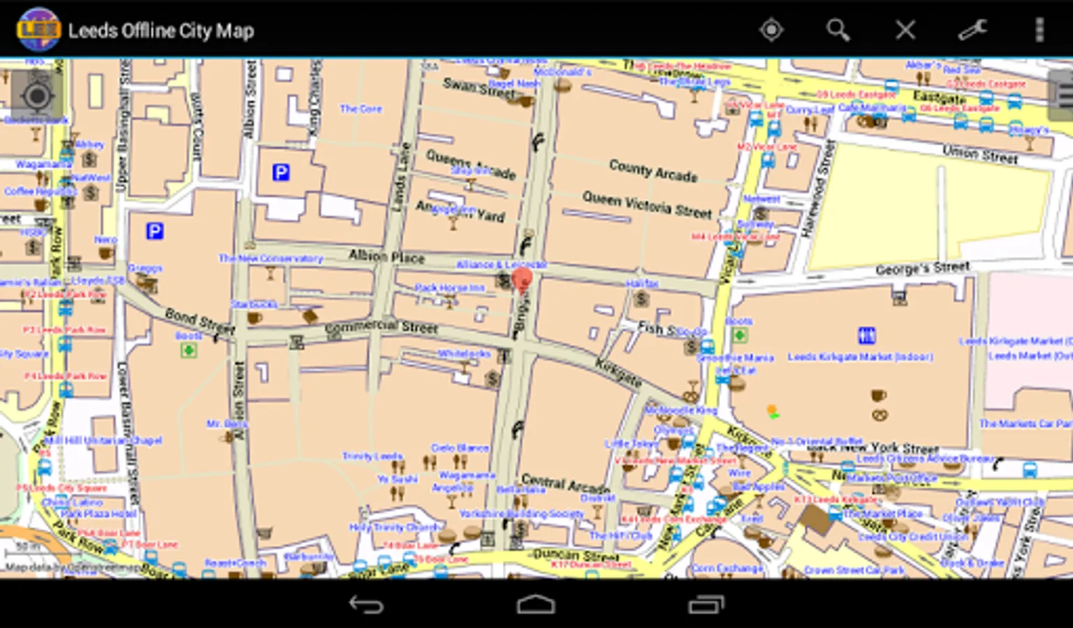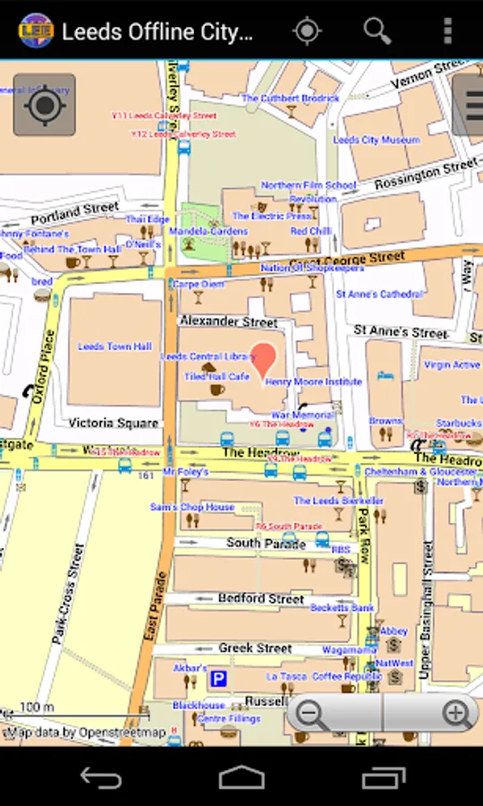 With this app you have the map of Leeds right in your pocket! It offers an interactive map that lets you browse the city at amazing detail. Additionally, it comes with a search index for locating streets, but also other places of interest such as museums, restaurants, cafés, hotels, sights and many more. After installing the app, no internet access is required anymore, neither for browsing the map nor for using the search functionality. As a result, the map loads reliably fast and it helps you reducing your data usage to stay within the limits of your data plan. Even if you're a tourist and do not have any mobile data plan at all, the map works equally well, independent of WIFI connectivity.