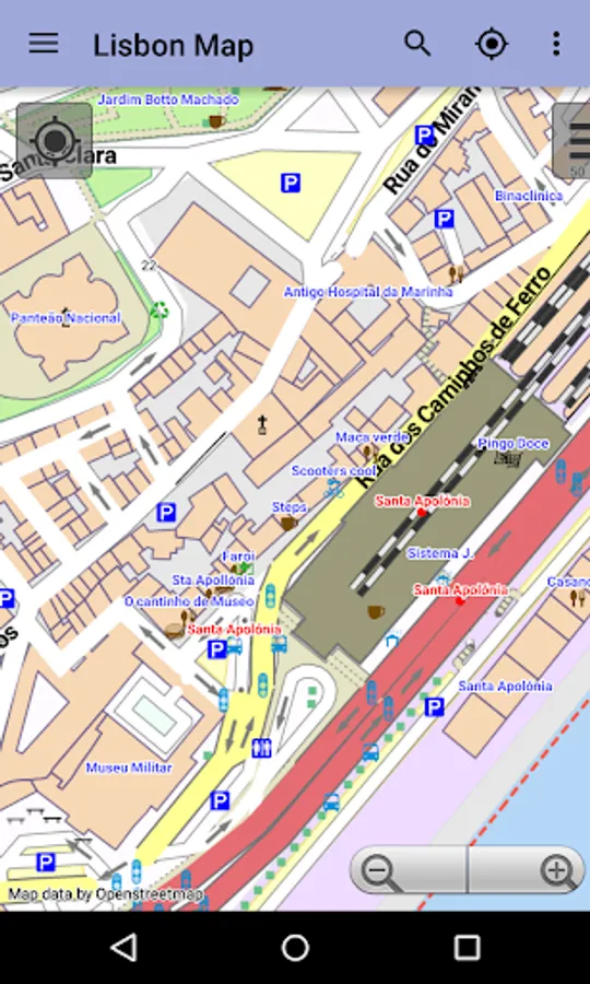 With this app you have the map of Lisbon right in your pocket! It offers an interactive map that lets you browse the city at amazing detail. Additionally, it comes with a search index for locating streets, but also other places of interest such as museums, restaurants, cafés, hotels, sights and many more. After installing the app, no internet access is required anymore, neither for browsing the map nor for using the search functionality. As a result, the map loads reliably fast and it helps you reducing your data usage to stay within the limits of your data plan. Even if you're a tourist and do not have any mobile data plan at all, the map works equally well, independent of WIFI connectivity.