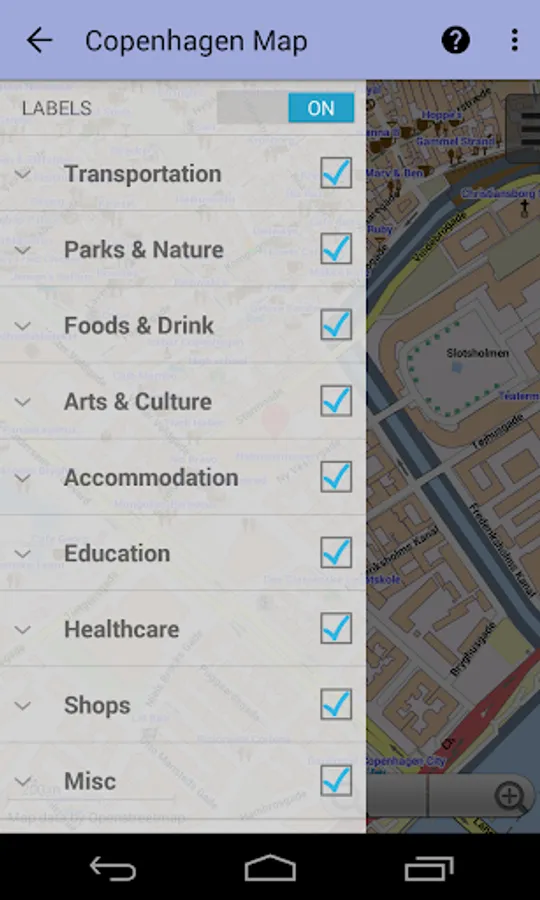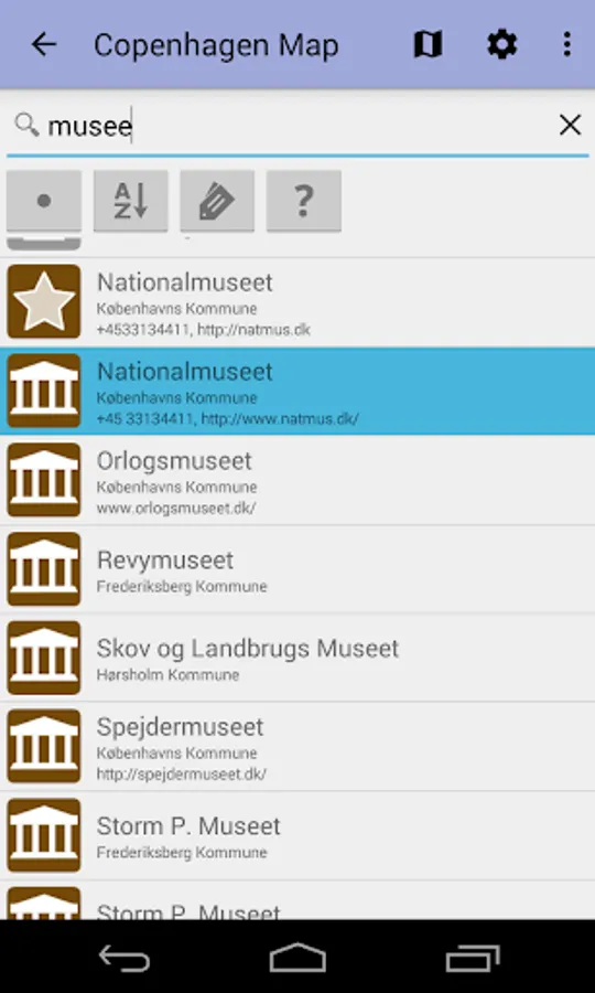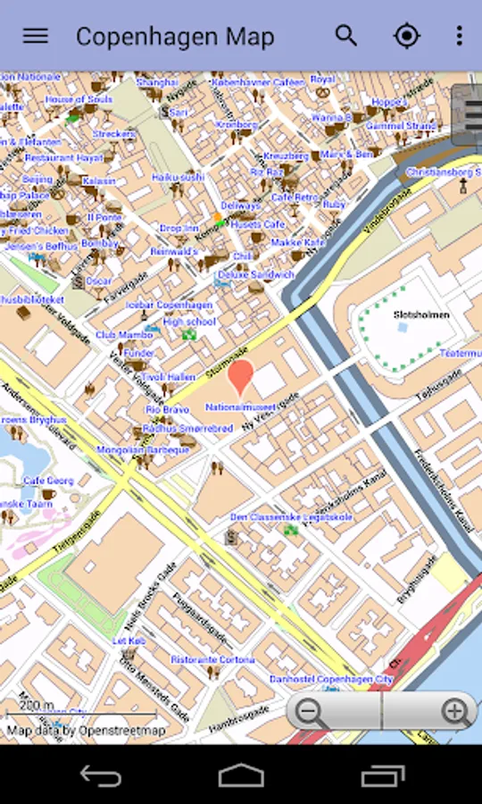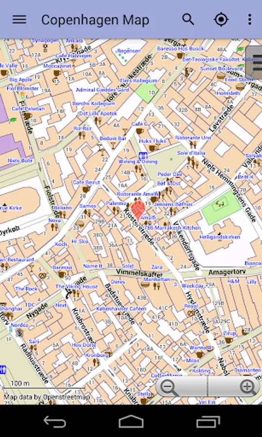 With this app you have the map of Copenhagen right in your pocket! It offers an interactive map that lets you browse the city at amazing detail. Additionally, it comes with a search index for locating streets, but also other places of interest such as museums, restaurants, cafés, hotels, sights and many more. After installing the app, no internet access is required anymore, neither for browsing the map nor for using the search functionality. As a result, the map loads reliably fast and it helps you reducing your data usage to stay within the limits of your data plan. Even if you're a tourist and do not have any mobile data plan at all, the map works equally well, independent of WIFI connectivity.