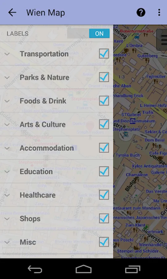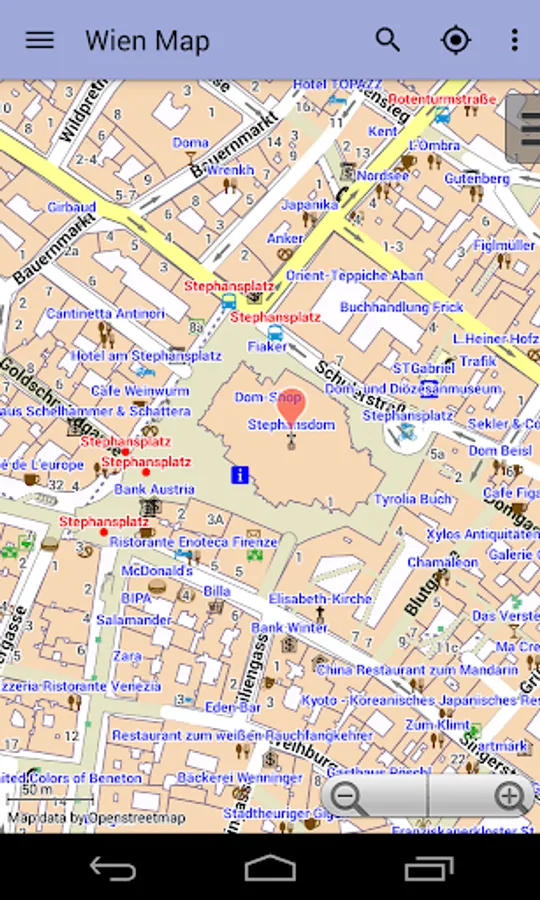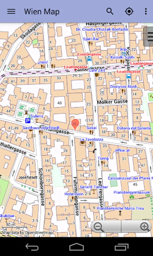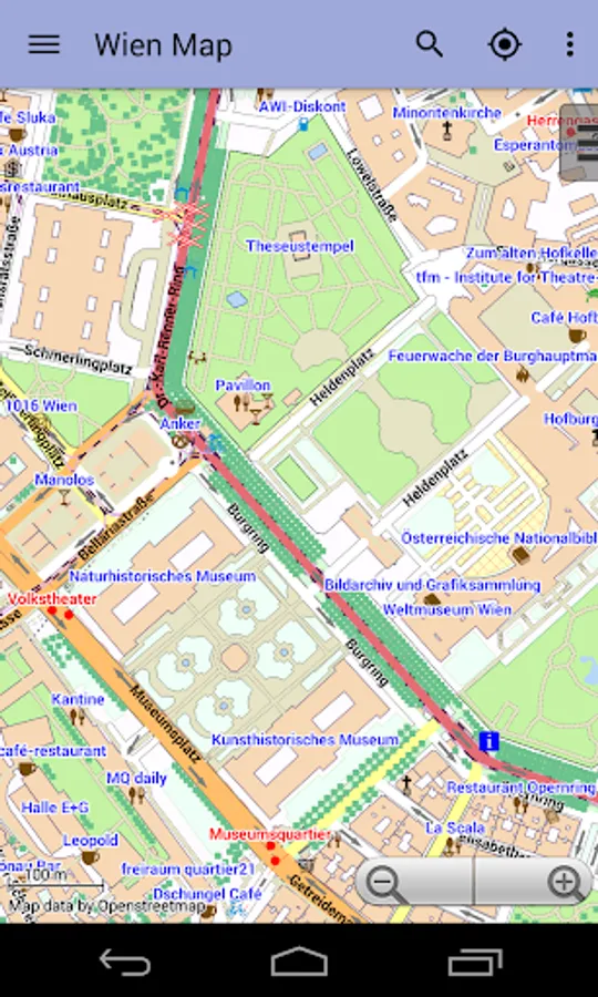 With this app you have the map of Vienna right in your pocket! It offers an interactive map that lets you browse the city at amazing detail. Additionally, it comes with a search index for locating streets, but also other places of interest such as museums, restaurants, cafés, hotels, sights and many more. After installing the app, no internet access is required anymore, neither for browsing the map nor for using the search functionality. As a result, the map loads reliably fast and it helps you reducing your data usage to stay within the limits of your data plan. Even if you're a tourist and do not have any mobile data plan at all, the map works equally well, independent of WIFI connectivity.