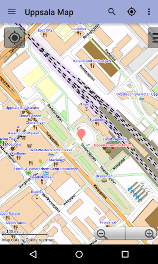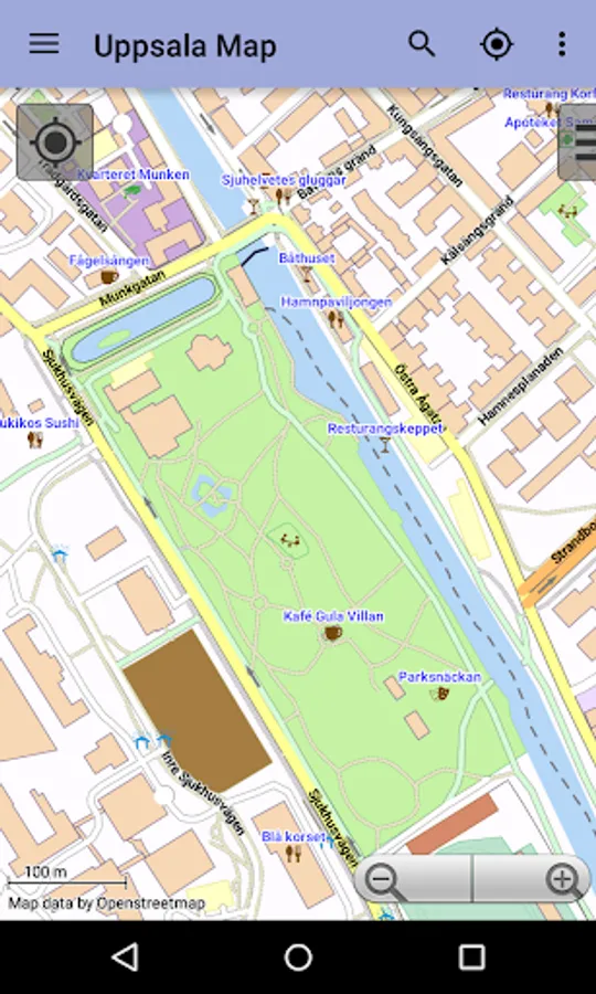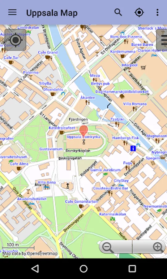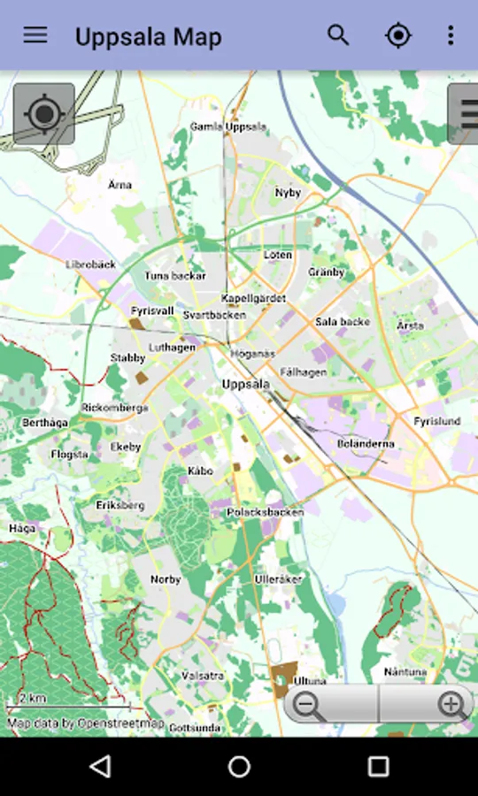 With this app you have the map of Uppsala right in your pocket! It offers an interactive map that lets you browse the city at amazing detail. Additionally, it comes with a search index for locating streets, but also other places of interest such as museums, restaurants, cafés, hotels, sights and many more. After installing the app, no internet access is required anymore, neither for browsing the map nor for using the search functionality. As a result, the map loads reliably fast and it helps you reducing your data usage to stay within the limits of your data plan. Even if you're a tourist and do not have any mobile data plan at all, the map works equally well, independent of WIFI connectivity.