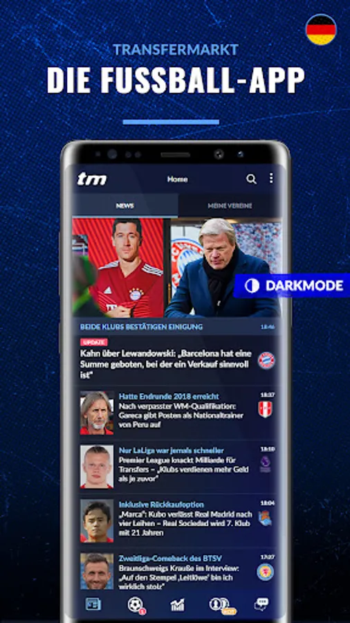 With our transfer market app, our editors and area managers keep you up to date on all national and international football news in all football leagues (Bundesliga 1, Bundesliga 2, Bundesliga 3, Regionalliga, La Liga, Serie A, Ligue 1, Süper Lig , Premier League etc.) always up to date.