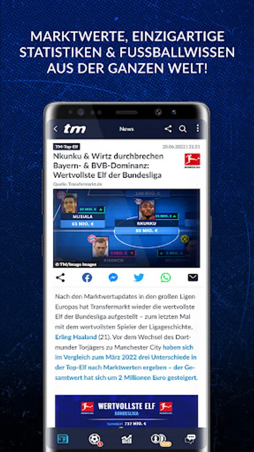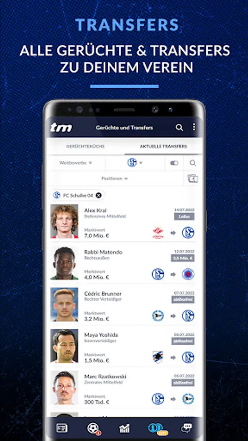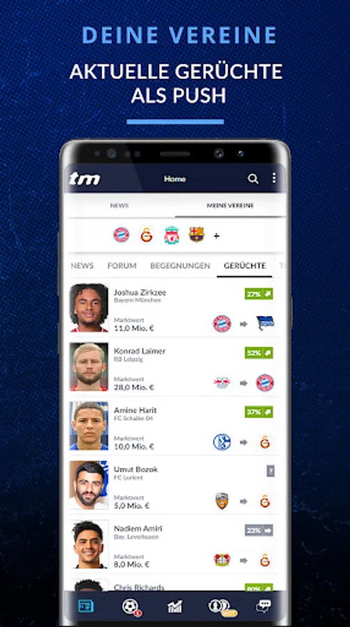 The Transfermarkt football app. The football portal with news, live ticker, transfers, rumours, market values for all leagues and the most comprehensive statistics about the Bundesliga and football.