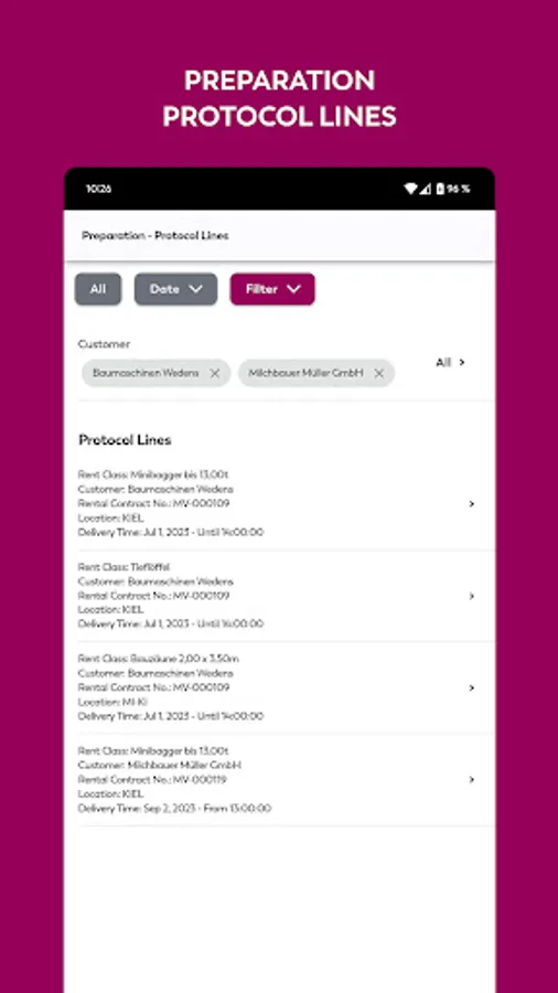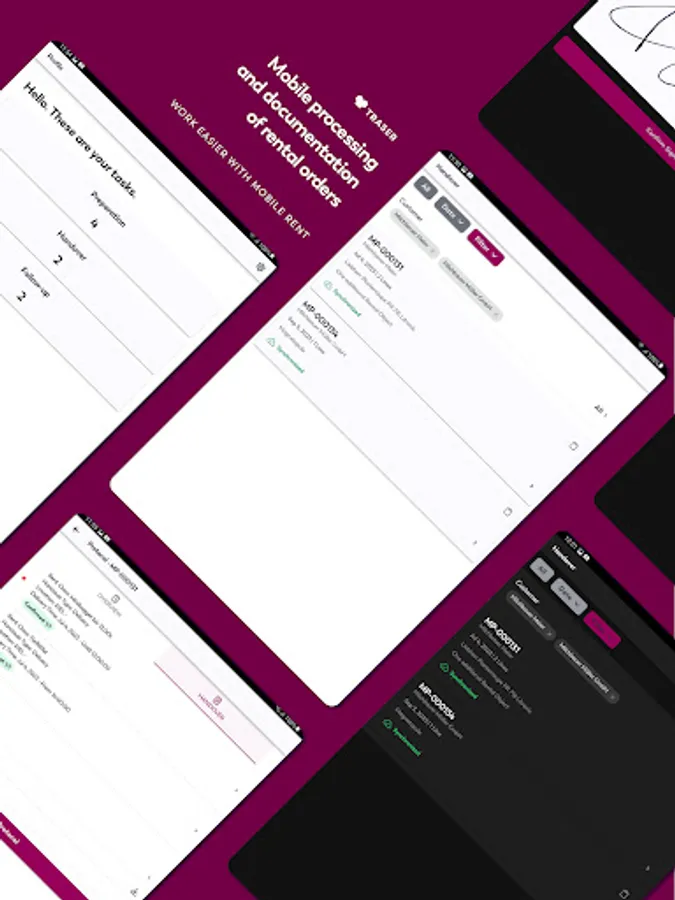 Die TRASER Mobile Rent 365 App erleichtert den Arbeitsalltag im Mietpark. Von überall können wichtige Aufgaben und Informationen dokumentiert und synchronisiert werden. Durch einfache Bedienung kann der Mietdisponent sofort Daten erfassen und sich auf seine Arbeit und Kundenservice konzentrieren.