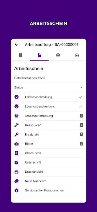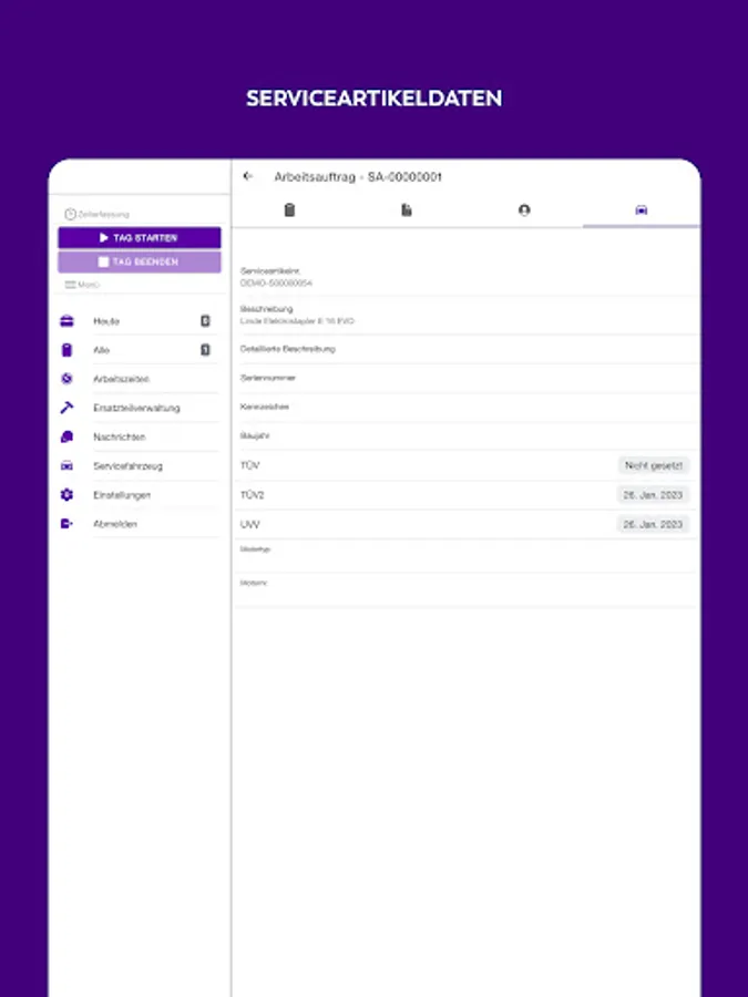 With the TRASER Service App your technician can process his field service orders. The TRASER Service App offers the following features:
