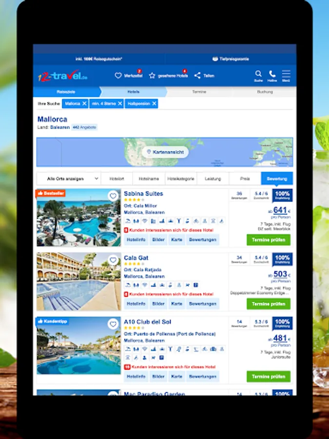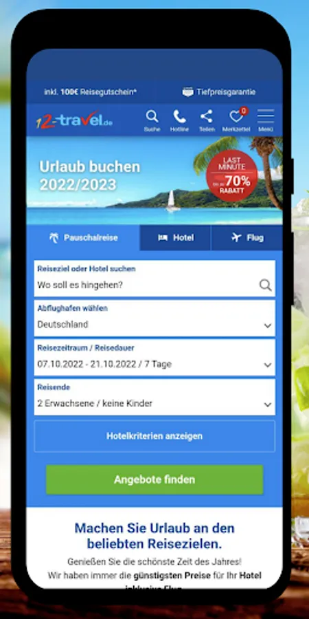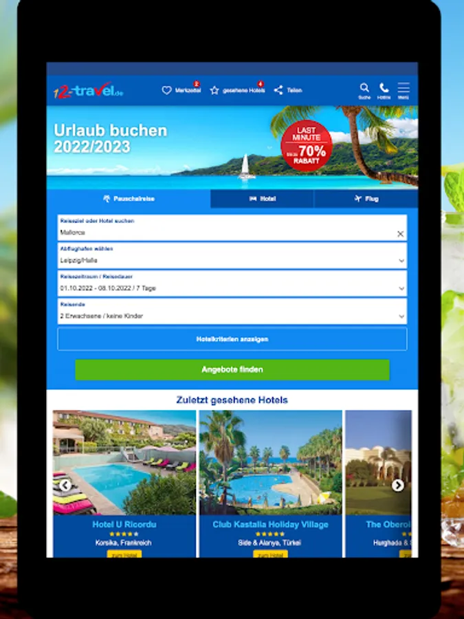 We are a competent travel agent who works with more than 140 tour operators. 12 Travel seeks and finds for you, from the endless holiday offers of tour operators, ensures the individually best applies to you and best price for your dream holiday and gives you even more to a travel voucher for the next book.