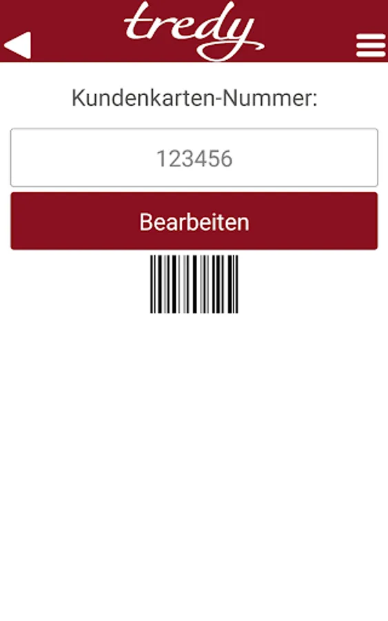 With this in mind we want to improve the service for the customer card for you. Whether you already have a TREDY-fashion-store card or to apply for a new one, you have the app the way your personal customer card number entered in order to facilitate your wallet around the small plastic card. From this moment you need in the store at the box office to open on your mobile device, only the app, click on the button "debit card number" and show the notes field with your own input debit card number. The employee in the store can book you directly to the sales of your purchase to your account. Your bonus counts!