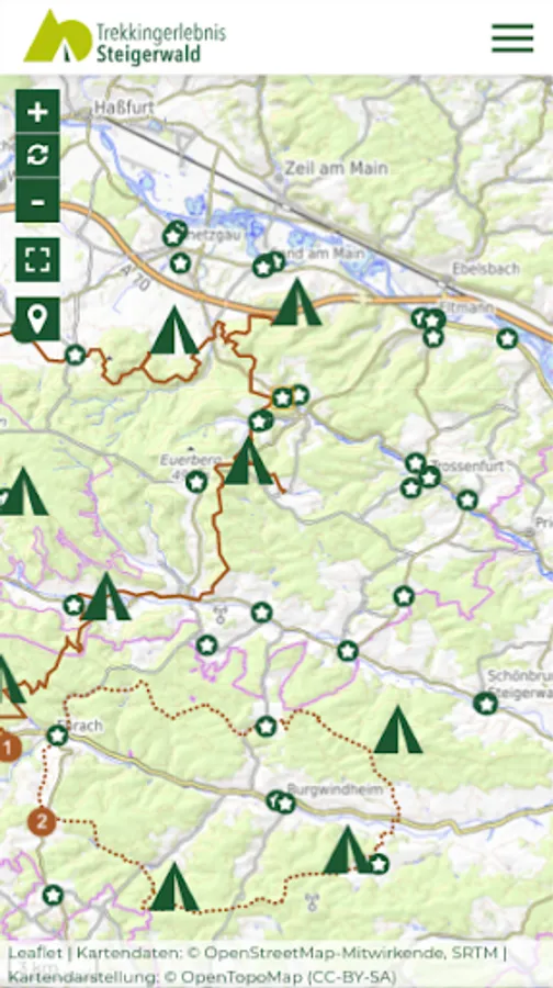 The main features of the Trekking Experience Steigerwald app: