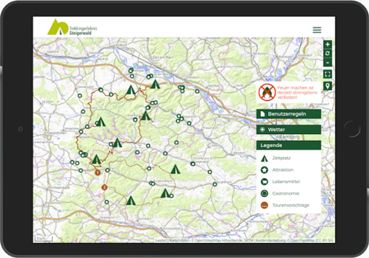 In addition, the website provides important information on trekking in the Steigerwald, forest fire hazards, severe weather warnings and other safety information.