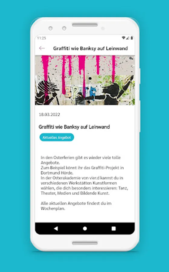 With the Kulturrucksack Dortmund app, you can get current cultural offerings for 10 to 14-year-olds to get involved with. The app provides information on all cultural backpack offers in Dortmund and quick registration with just a few clicks.