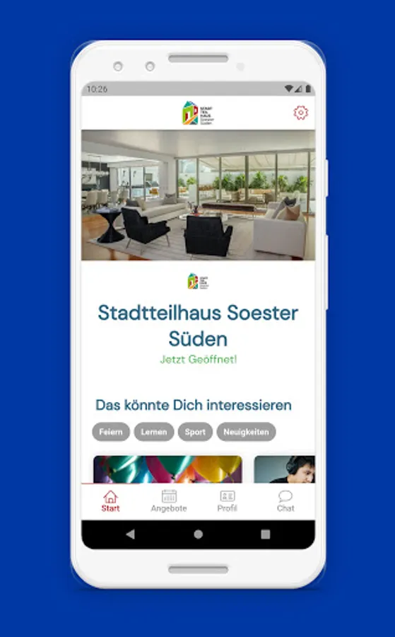 In our new app you will find information about all events, offers and opening times. You will also be notified upon request. You can register for events or just take a look at what's current in the district building.